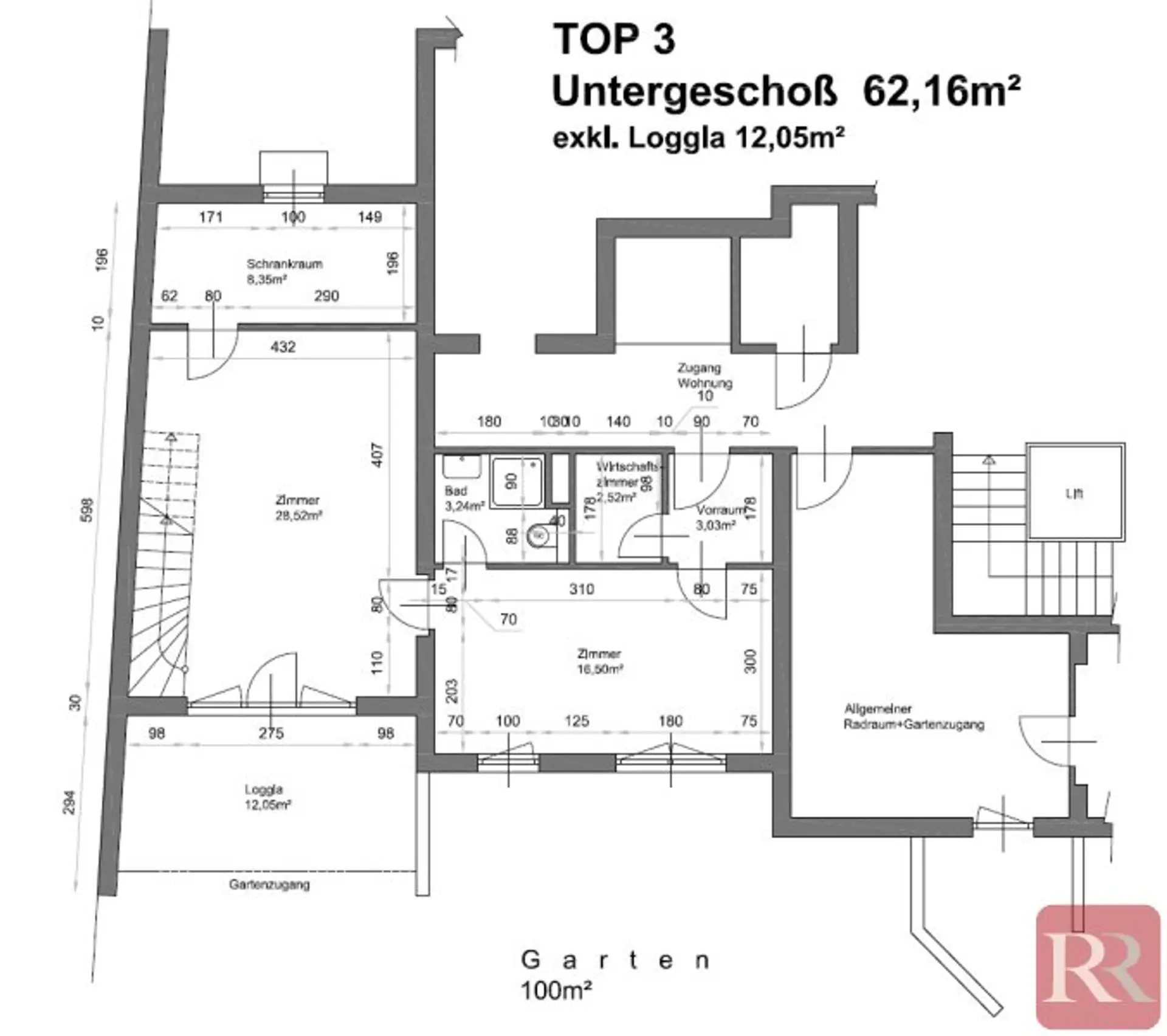 RAUMAUFTEILUNG – GARTENGESCHOSS (CA. 62 M²)