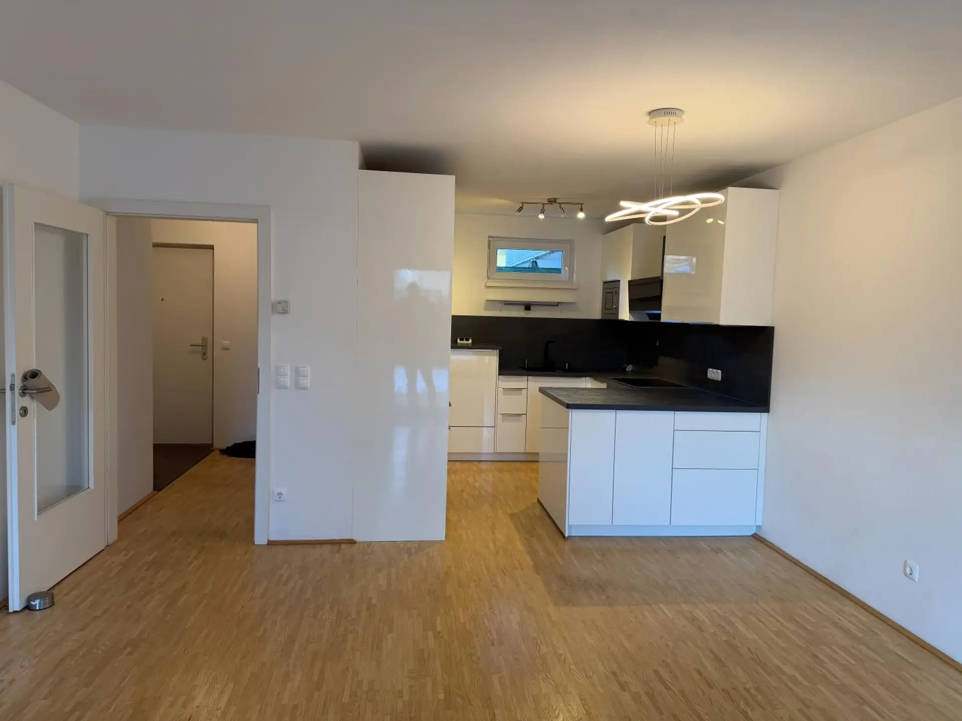 Großzügiger, offener Wohn-Essraum mit integrierter Küche. Die Küche (Tischler) ist neuwertig (BJ 2023) und hochwertig ausgestattet.