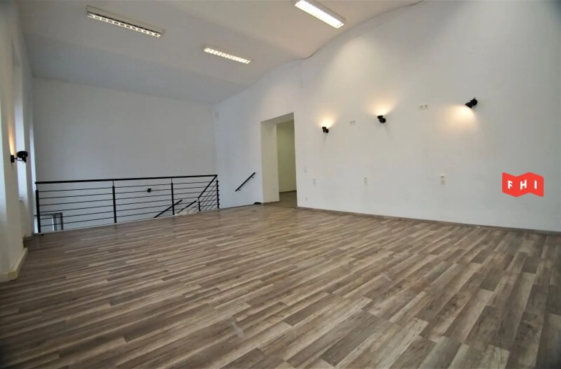 Große Auslagenfront, Eingang, untere Ebene mit dahinterliegenden Räumlichkeiten für Nassräume oder anderweitig (derzeit Tonstudio), obere Ebene mit 2 großen Räumen und dahinterliegenden Nassräumen, Küche und Büro, sowie Lagerräume.