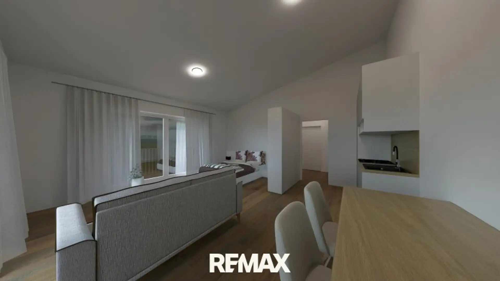 Vorraum, Bad, WC, Wohn/Schlaf-Koch und Essbereich