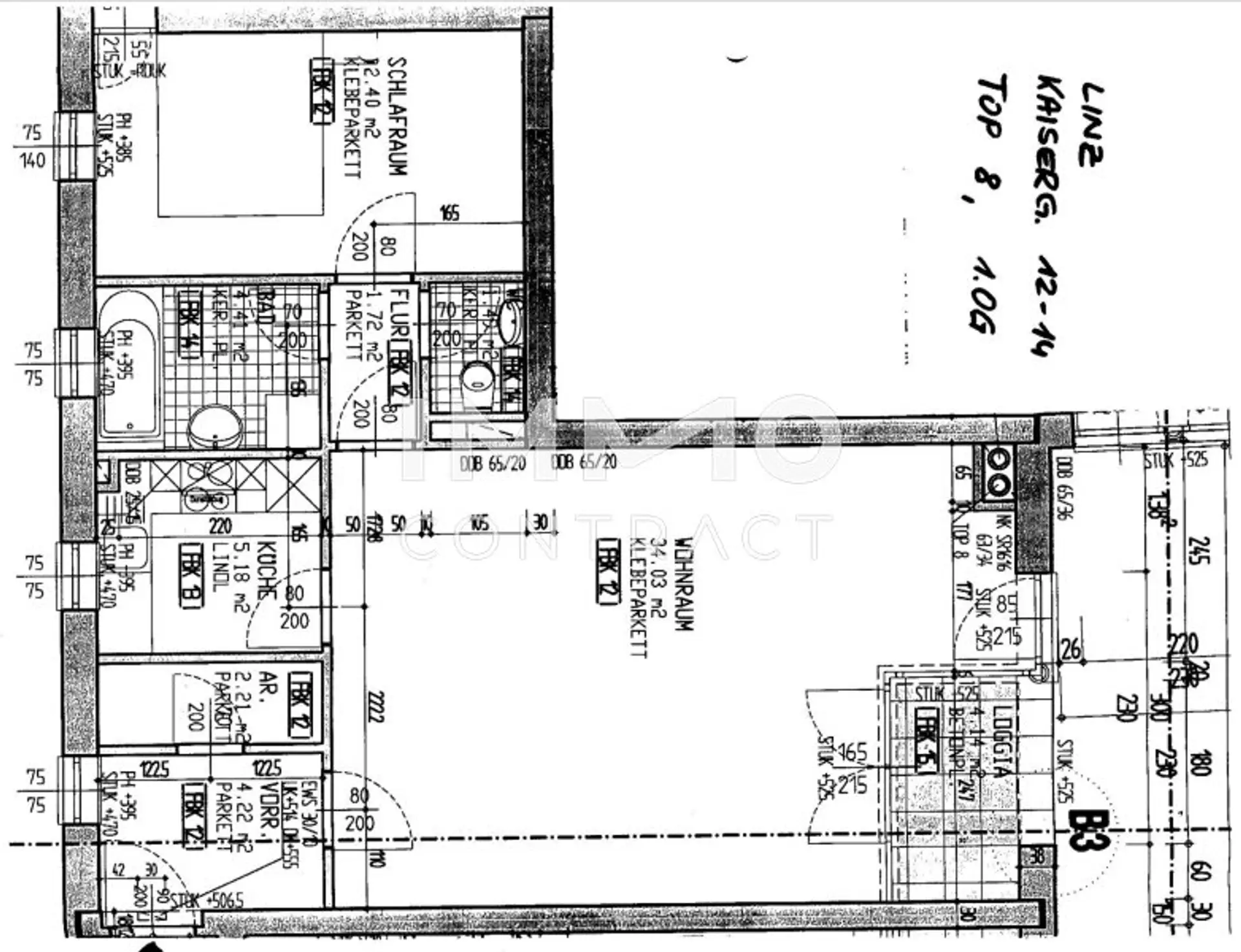 Raumaufteilung: Vorraum, Abstellraum, Küche, Bad, WC, Schlafzimmer und Wohnzimmer, Loggia,