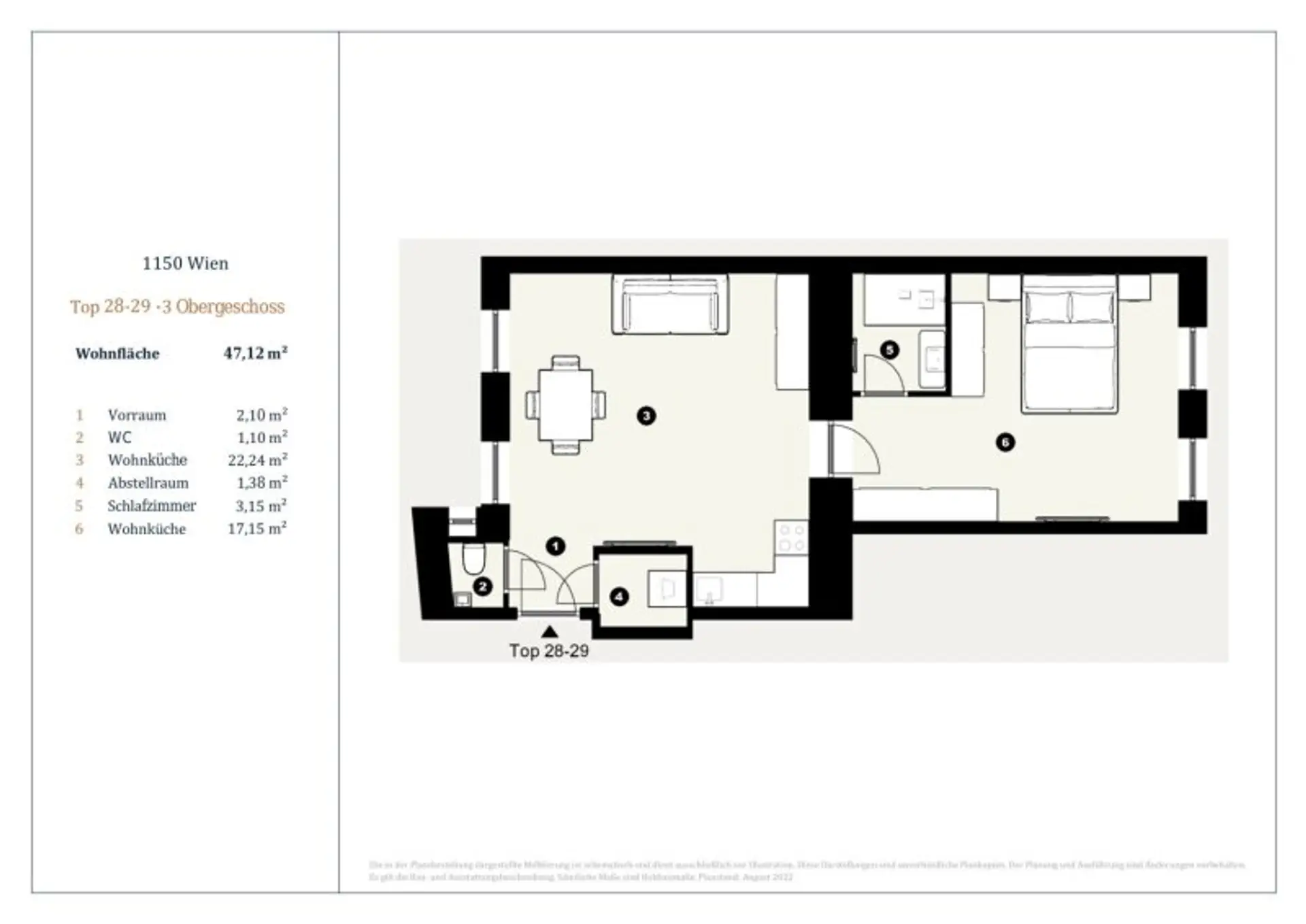 Die Wohnung ist ein Erstbezug, verfügt über ca. 47 m² und befindet sich im 3. Stock eines schönen Altbaus und gliedert sich in eine Wohnküche, ein Zimmer, einen Abstellraum, ein Badezimmer und ein separates WC. Die Wohnräume sind mit schönem Parkettboden ausgestattet, Bad und WC sind verfliest.