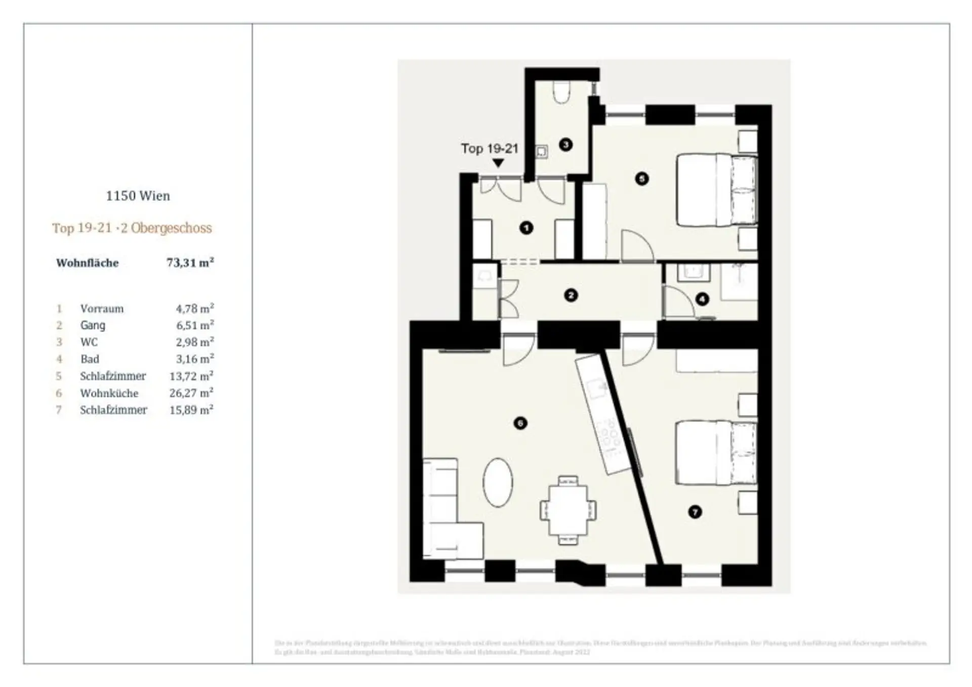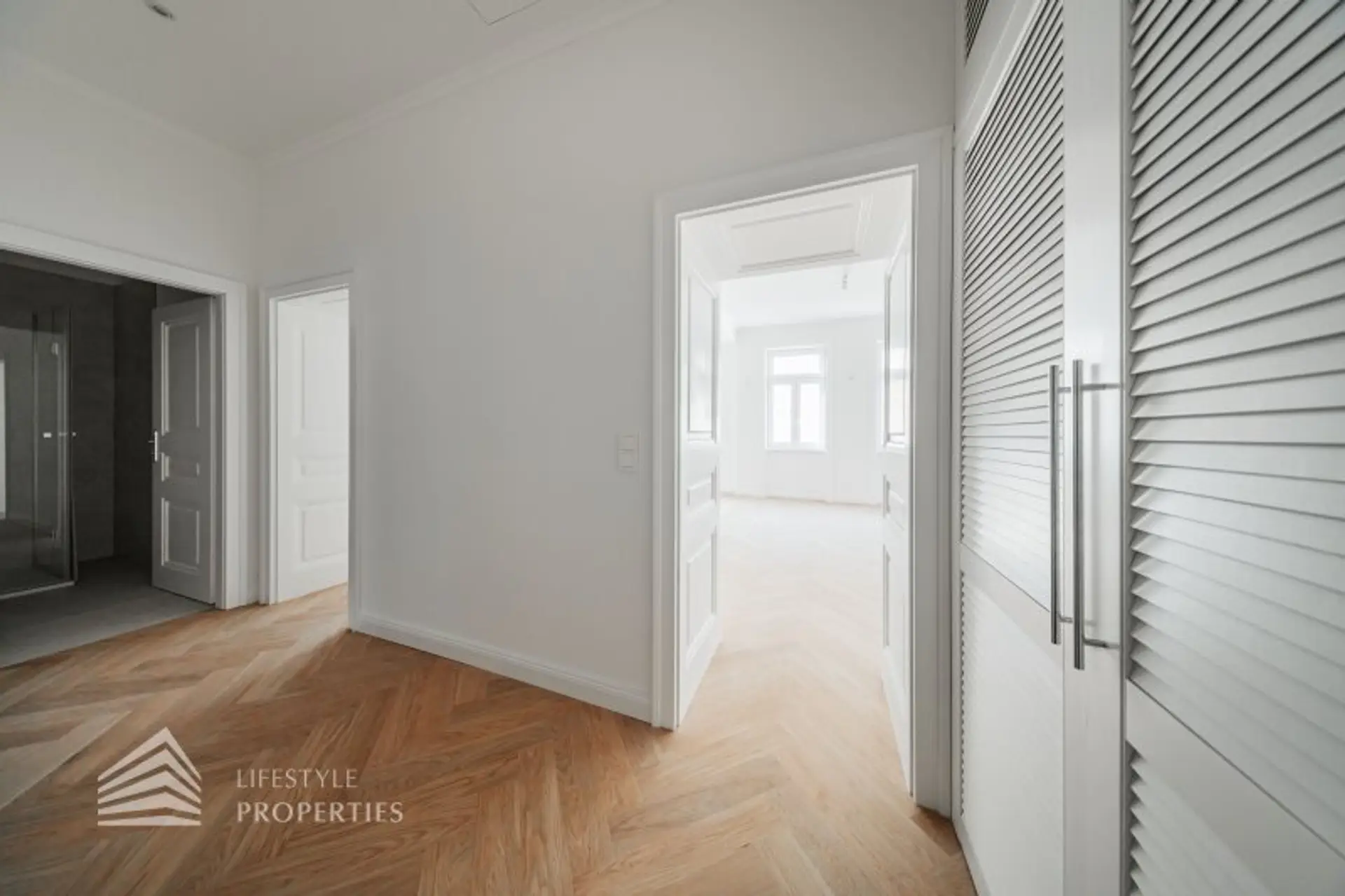 Die Wohnung ist ein Erstbezug, verfügt über ca. 73 m², befindet sich im 2. Stock eines schönen Altbaus und gliedert sich in einen Vorraum, zwei Zimmer, eine Wohnküche, ein Badezimmer und ein separates WC. Die Wohnräume sind mit schönem Parkettboden ausgestattet, Bad und WC sind verfliest. Beheizt wird mit Fußbodenheizung.