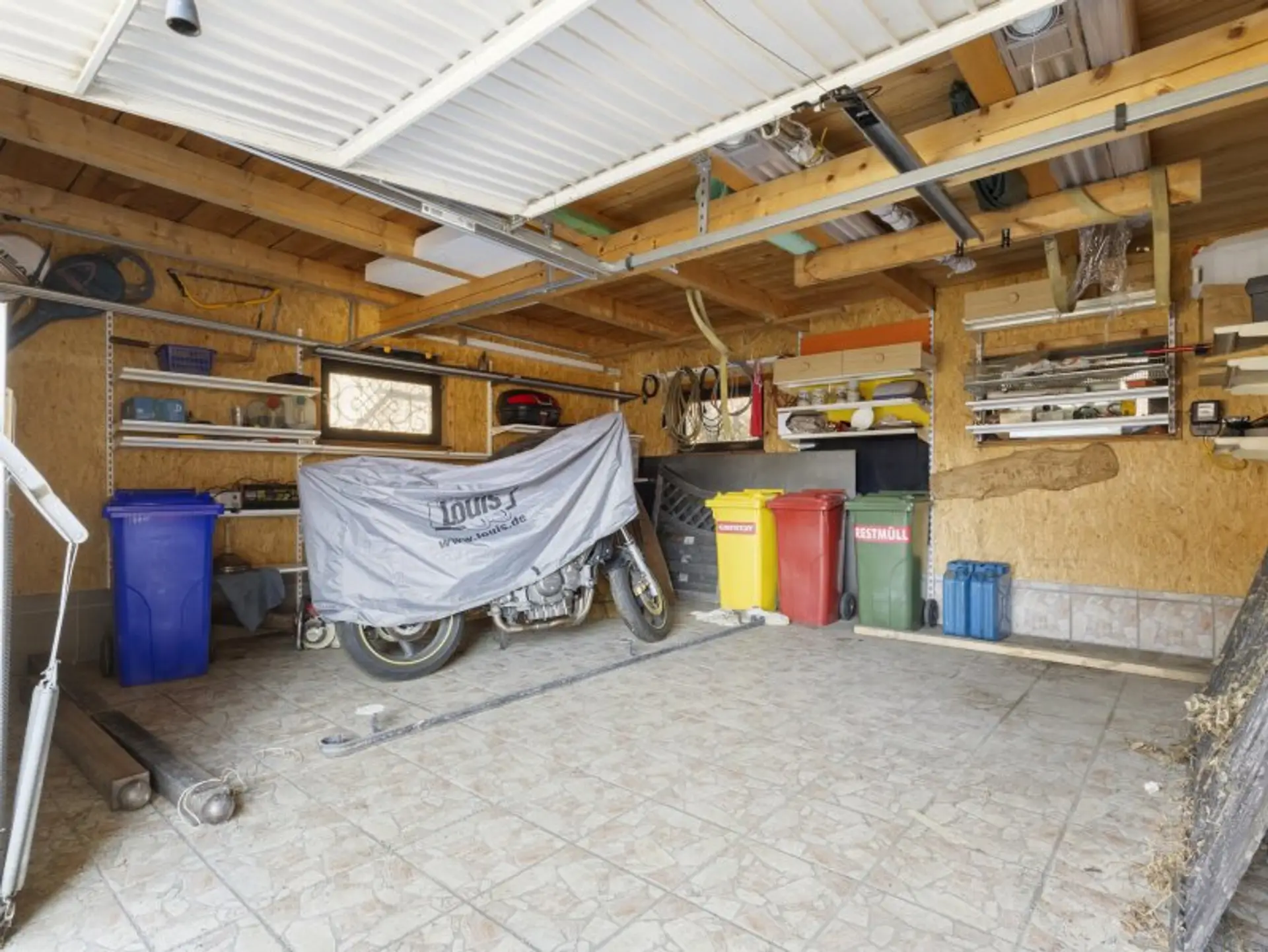 Direkt an den nördlichen Teil des Hauses am Neubestand schließt eine Doppelgarage (ca. 30,00m²) mit einem kleinen Dachboden an, dessen Dach im Jahr 2018 neu eingedeckt wurde. Durch regelmäßige Instandhaltungen befinden sich die Wohnhäuser in einem guten und soliden Zustand. Vor dem Haus befindet sich die Terrasse mit einem kleinen Garten zum Entspannen.