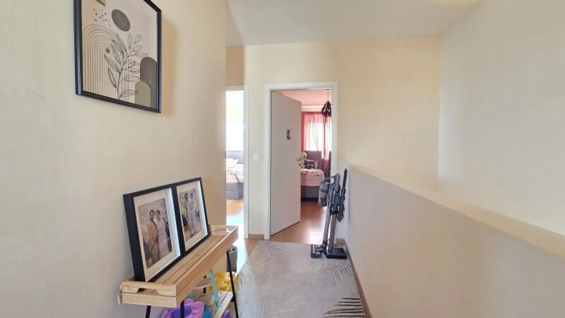 Im Obergeschoß befindet sich neben drei Schlafzimmer/Büro/Kinderzimmer, ein Badezimmer mit Dusche und WC.