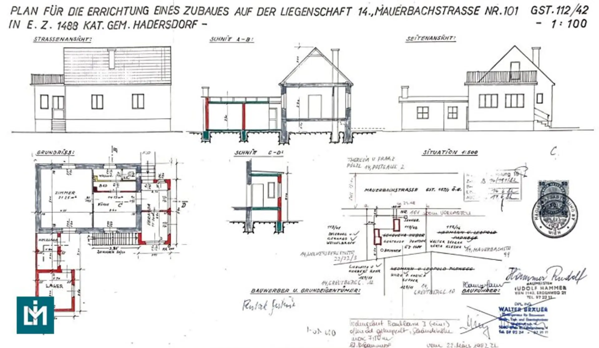 Zum sofortigen Verkauf gelangt dieses ca. 500 m² große Grundstück, in guter Lage des 14. Wiener Gemeindebezirks (Penzing). Auf der Liegenschaft befindet sich aktuell ein abbruchreifer Altbestand. Das Haus wurde 1951 errichtet. 1982 wurden an der hinteren Gebäudefront ein ebenerdiger Zubau sowie an der linken Gebäudefront eine Veranda zugebaut (siehe Pläne).