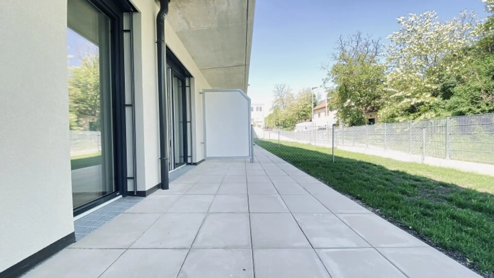 Die Wohnungen sind umgeben von Grünflächen und Weingärten.