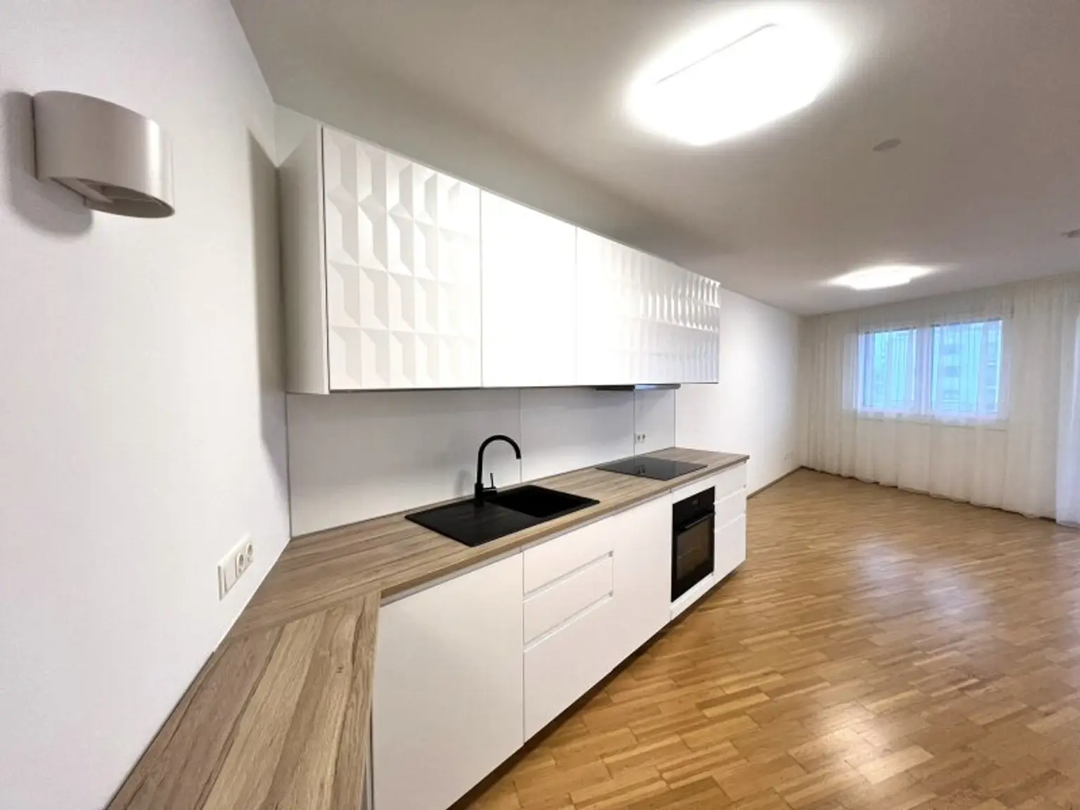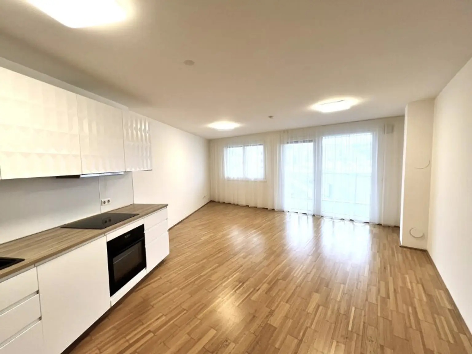 * Großes Wohn- und Esszimmer mit offener Einbauküche samt Geräten