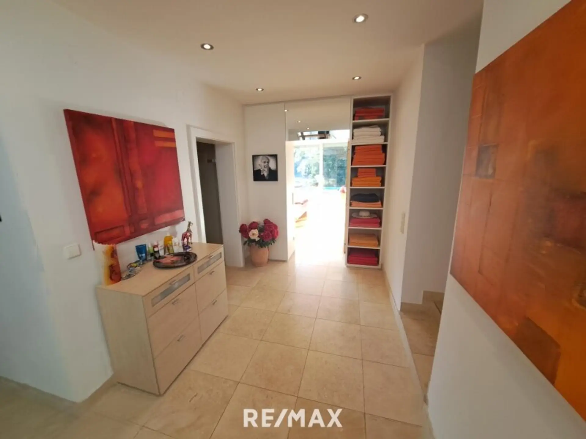 6. Die 8,2 kWp PHOTOVOLTAIK-Anlage und moderne TECHNIK versprechen Bequemlichkeit, Verlässlichkeit und Ressourcenschonung. In einem eigenen Technik- und Wirtschaftsraum werden die technischen Einrichtungen, die Elektrik inkl. Busschaltung, die ERDWÄRME-HEIZUNGSANLAGE für Fußboden-, Wand-, Radiatoren-, Pool- und Dachrinnenheizung, die Photovoltaik, die Autostromanlage und der Warmwasserpufferspeicher gemanagt. Auch Waschmaschine, Trockner, Bügelbrett und ein großer Gefrierschrank finden Platz in diesem Raum.
