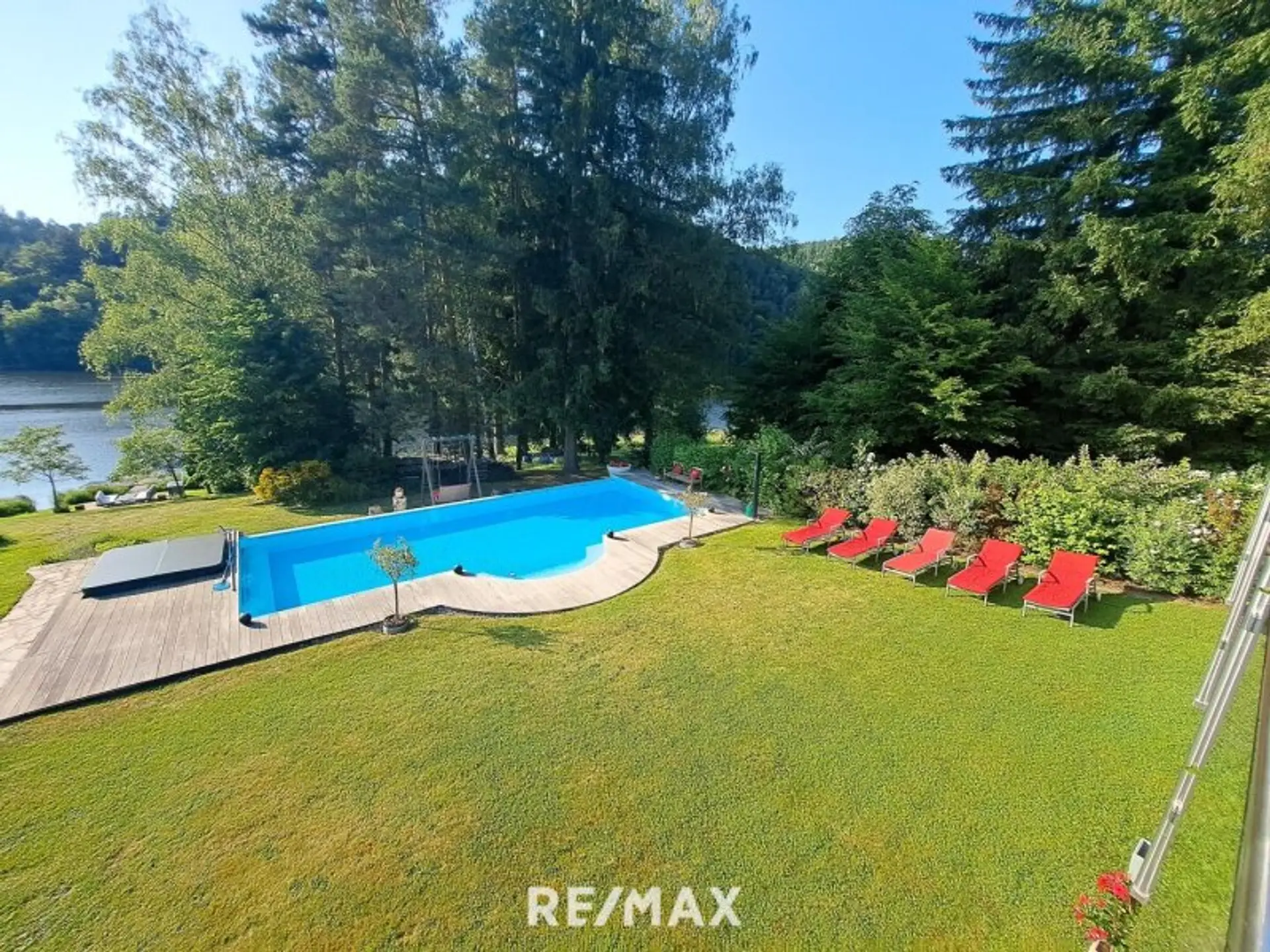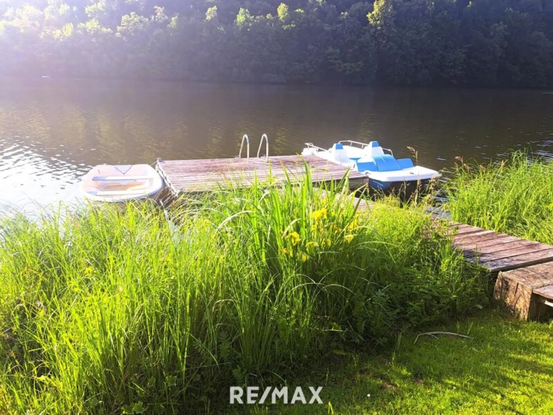 8. Als besonderes Highlight zeigt sich der SEELIEGEPLATZ; ein direkt beim Seeufer gemauerter Sonnenliegeplatz mit Mobilar und Bade- bzw. Bootssteg. Ruder- und Tretboot sowie ein Stand-Up-Paddelbrett liegen einsatzbereit vor Ort.