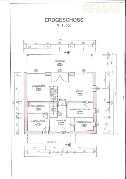 EG: Vorraum, offener Wohnessbereich, Schrankraum, Terrasse, WC, Wirtschaftsraum,