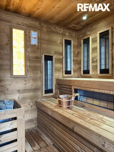 Ein besonderes Highlight stellt der hell durchleuchtete Wohnessbereich dar, mit teilweisem Blick vom Garten auf den See. Weiteres bietet das Objekt neben einer Sauna & Infrarotkabine eine ca. 66 m² überdachte Terrasse, eine kontrollierte Wohnraumlüftung sowie hochwertige Holz-Alufenster.