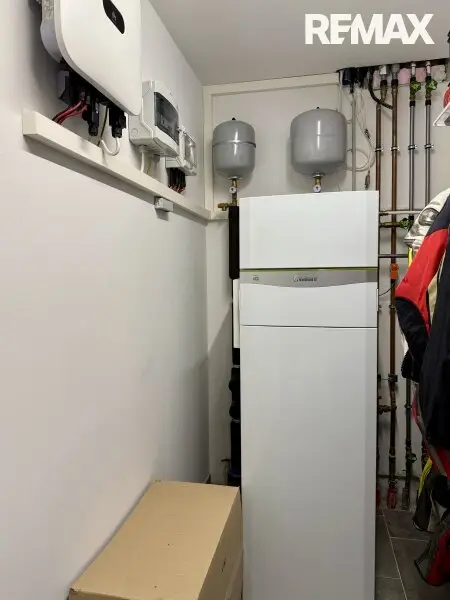 Beheizt wird mittels einer Fußbodenheizung durch eine Luftwärmepumpe.