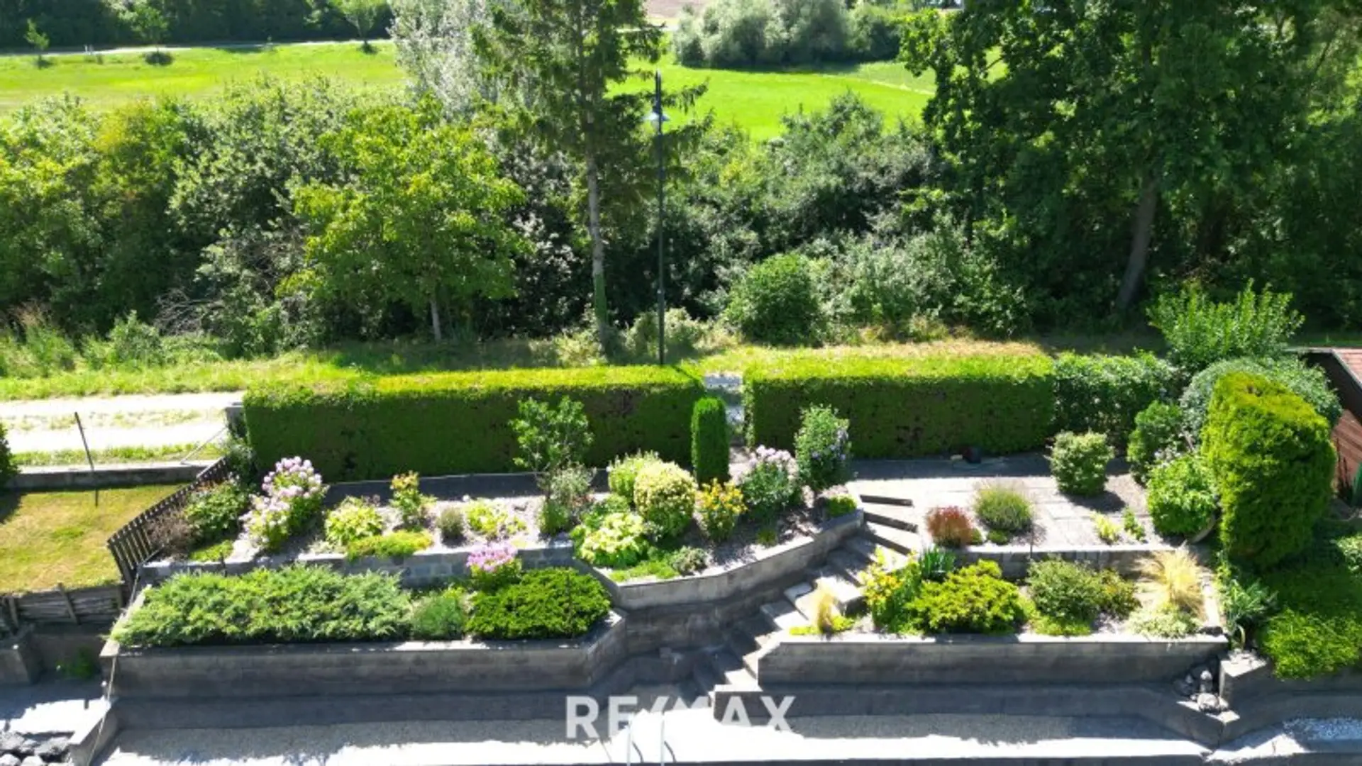 Der sehr schön gepflegte gegenüberliegende Grünbereich gehört ebenfalls zu dem Anwesen.