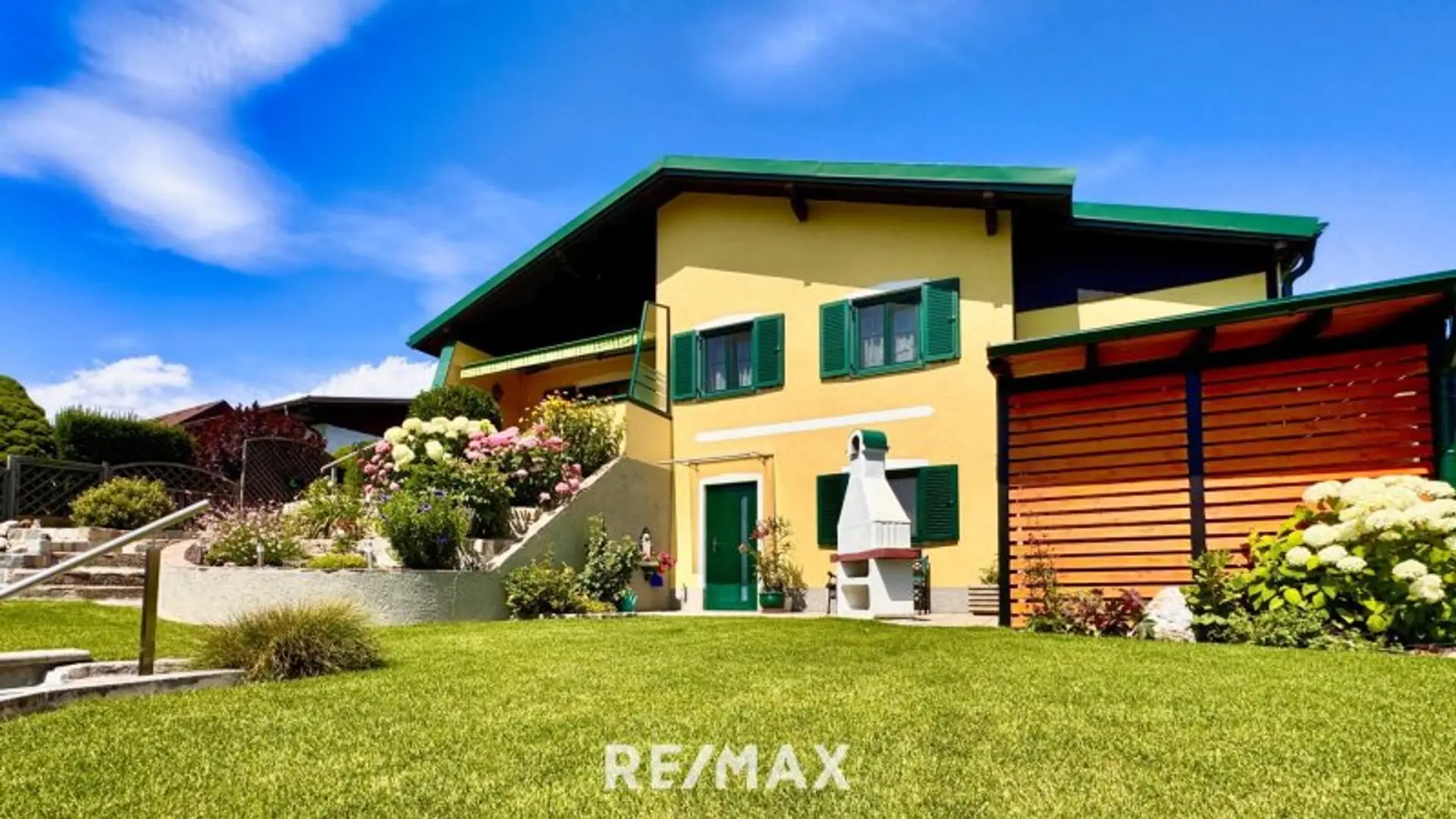 Ein überdachter Sitzplatz, ein geräumiger Schuppen und ein Griller vervollständigen das Angebot.