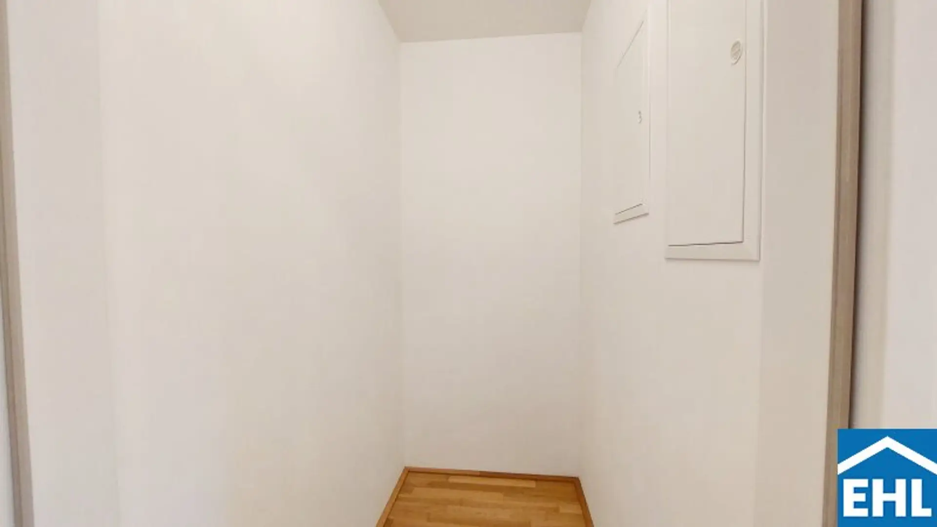 Die Wohnung selbst liegt in der 3. Etage und verfügt über eine großzügige Wohnküche, ein Schlafzimmer, ein Badezimmer mit Badewanne und Waschmaschinenanschluss, ein separates WC, sowie einen Abstell- und einen Vorraum. Der süd-ostseitige Balkon rundet das Wohnerlebnis ab.
