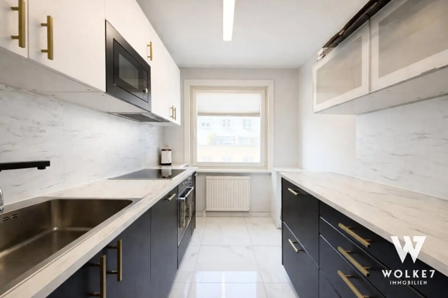 Voll ausgestattete Küche mit Fenster