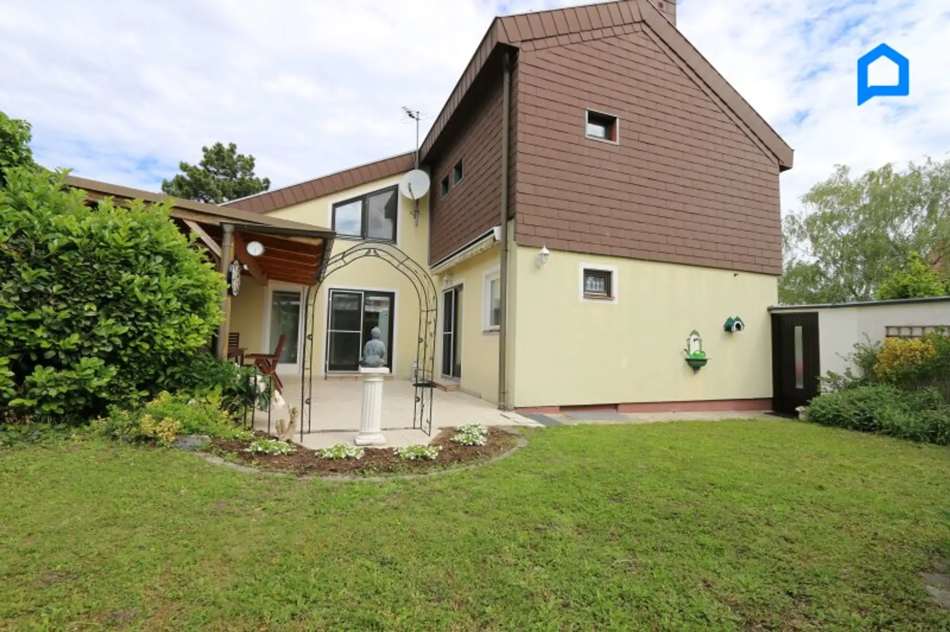 Bereits beim Betreten überzeugt das Haus durch seine durchdachte Raumaufteilung, helle Räume und ein angenehmes Wohngefühl. Die sonnige Terrasse mit Pergola und der gepflegte Garten schaffen zusätzlichen Freiraum für gemütliche Stunden im Grünen.