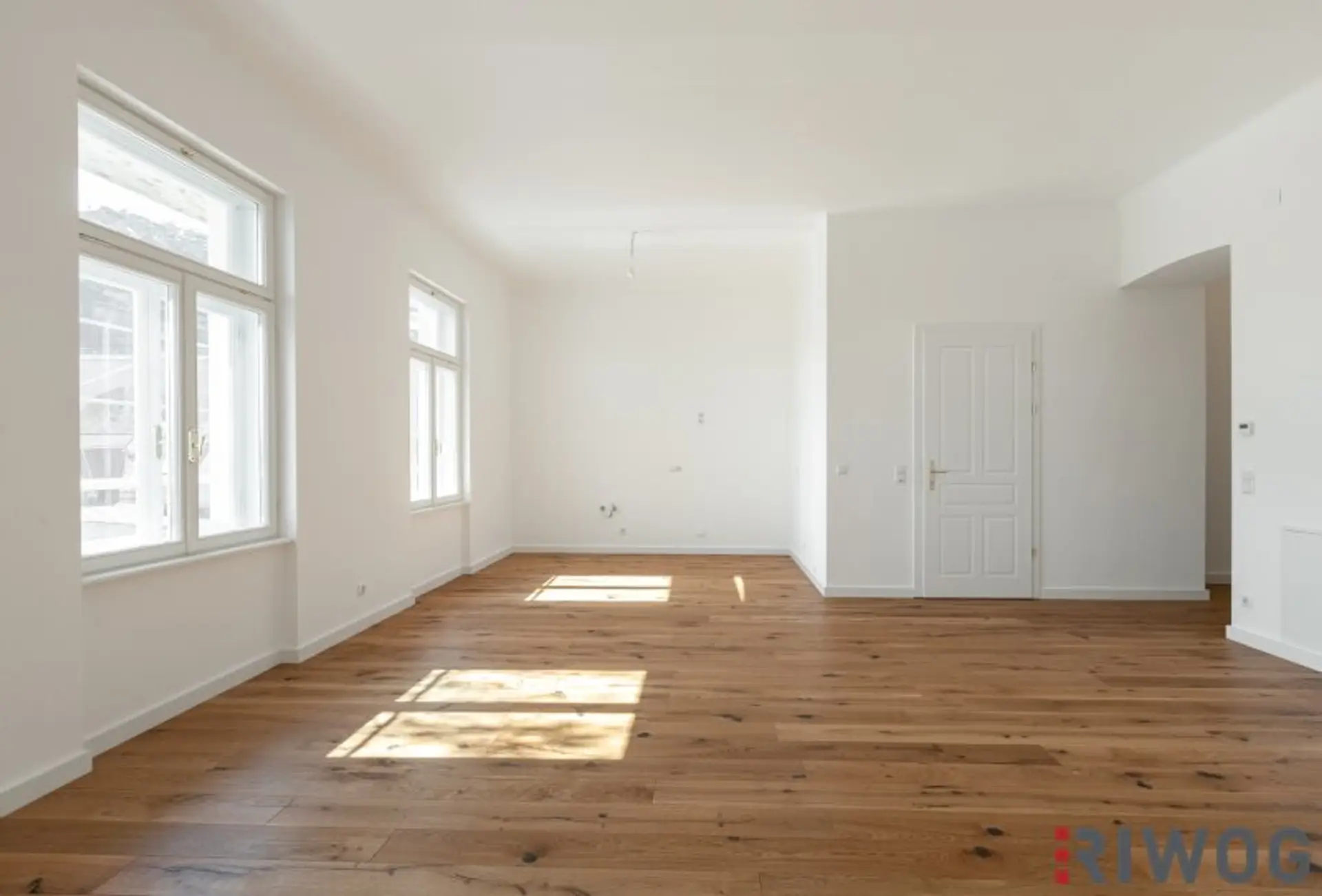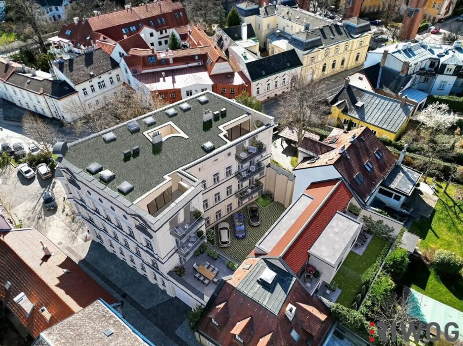 Das imposante Eckhaus mit wird komplett modernisiert, die Fassade aufwendig restauriert, die Fenster originalgetreu nachgebaut und zusätzlich werden alle Wohnungen mit zeitgemäßen, qualitativ selektierten und hochwertigen Materialen sowie neuester Technik ausgestattet. In den Rohdachboden werden 2-3 moderne Dachgeschosswohnungen mit Terrassen eingebaut. Im Altbau erhalten ausgewählte Wohnungen Terrassen, Balkone oder Gärten. Der Innenhof wird teilweise begrünt und mit 3 KFZ Stellplätzen, welche zum Kauf erhältlich sind, ausgestattet und ein Lift wird vom Keller bis zum Dachgeschoß eingebaut. Das Hofhaus wird ebenfalls wieder zum Leben erweckt und bietet einen unglaublich imposanten Blick über die Gärten direkt auf die St. Othmar Kirche.