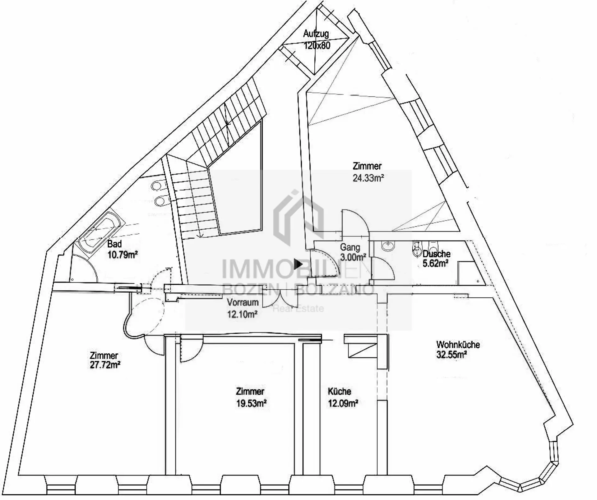 Schöne 5-Zimmerwohnung im Zentrum von Bozen zu verkaufen. Die Immobilie befindet sich im 2. Stock eines Gebäudes mit der Energieklasse „E“ und hat eine Fläche von ca. 196 m². Sie ist nach Nord-Süd-West ausgerichtet und ist wie folgt unterteilt: Eingangsbereich mit Flur, Wohnzimmer, Küche, 3 Schlafzimmer und 2 Badezimmer. Sie ist mit hochwertigen Einbaumöbeln ausgestattet und befindet sich unter Denkmalschutz. Die Deckenhöhe von ca. 3,20 Metern und der schmuckvolle Stuck verleihen der Wohnung einen Charm. Die angegebenen Informationen sind indikativ und können Abänderungen unterliegen.