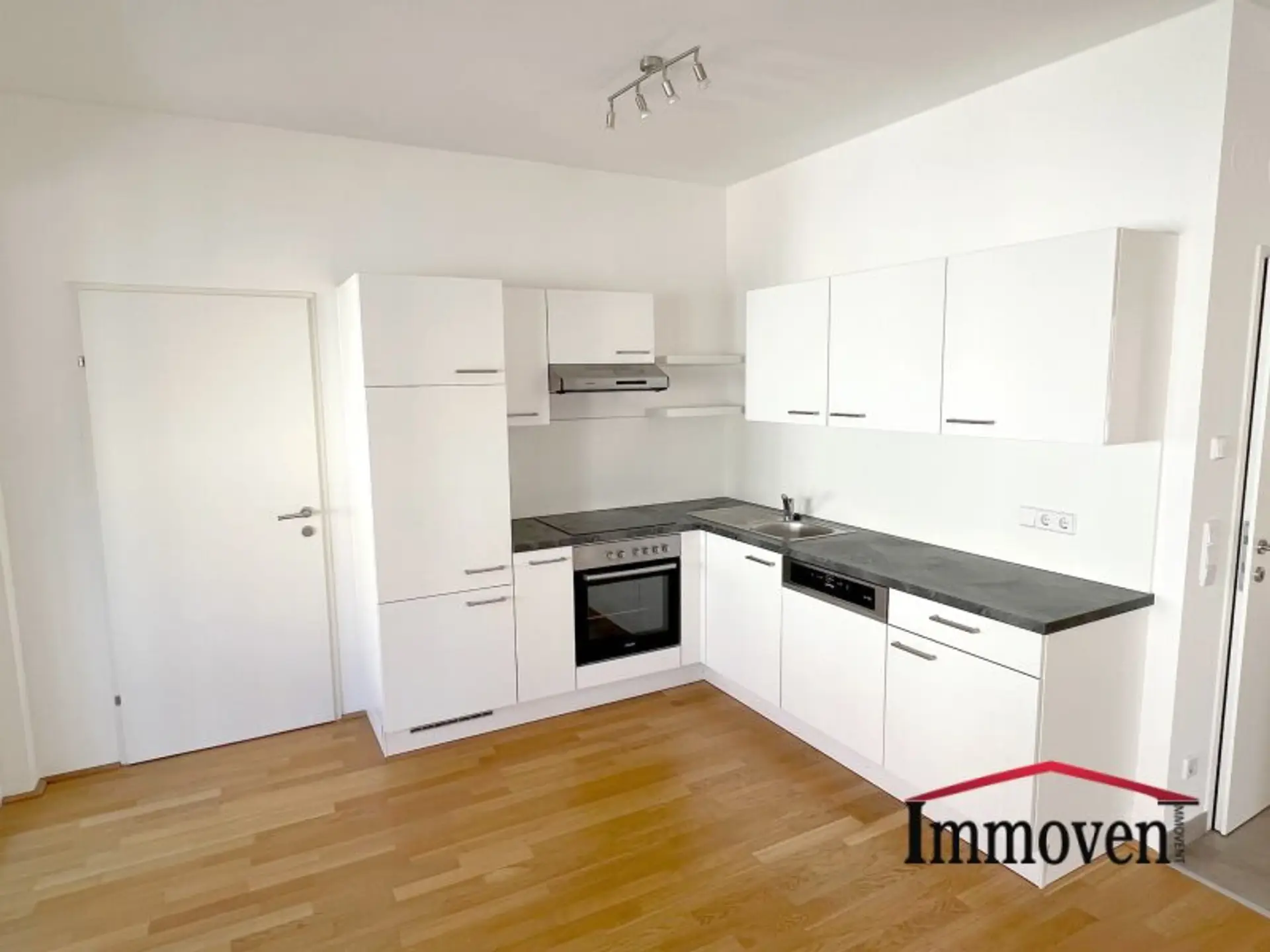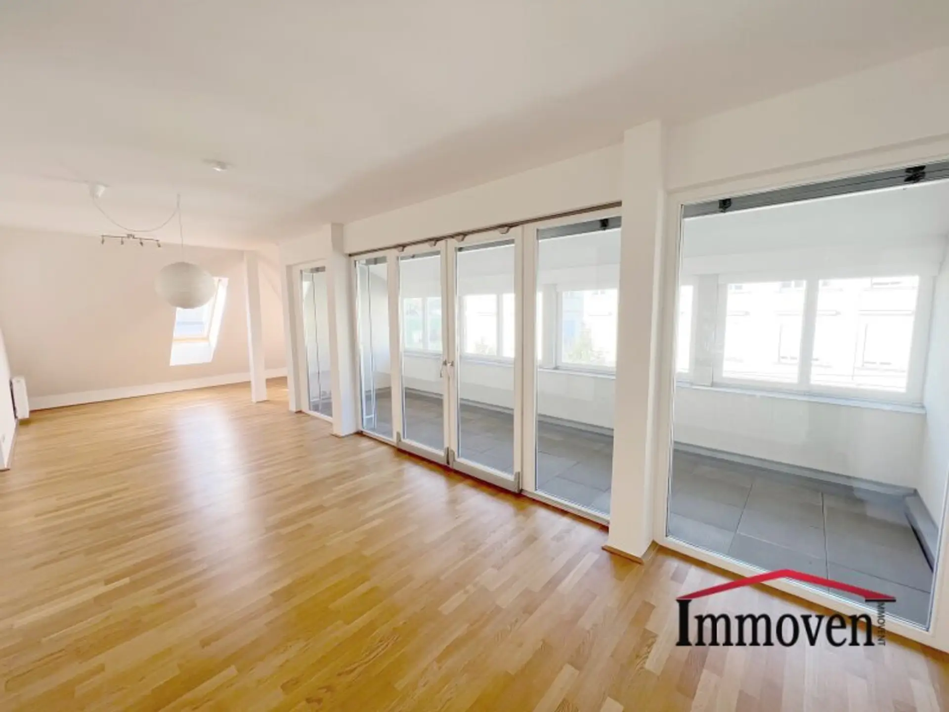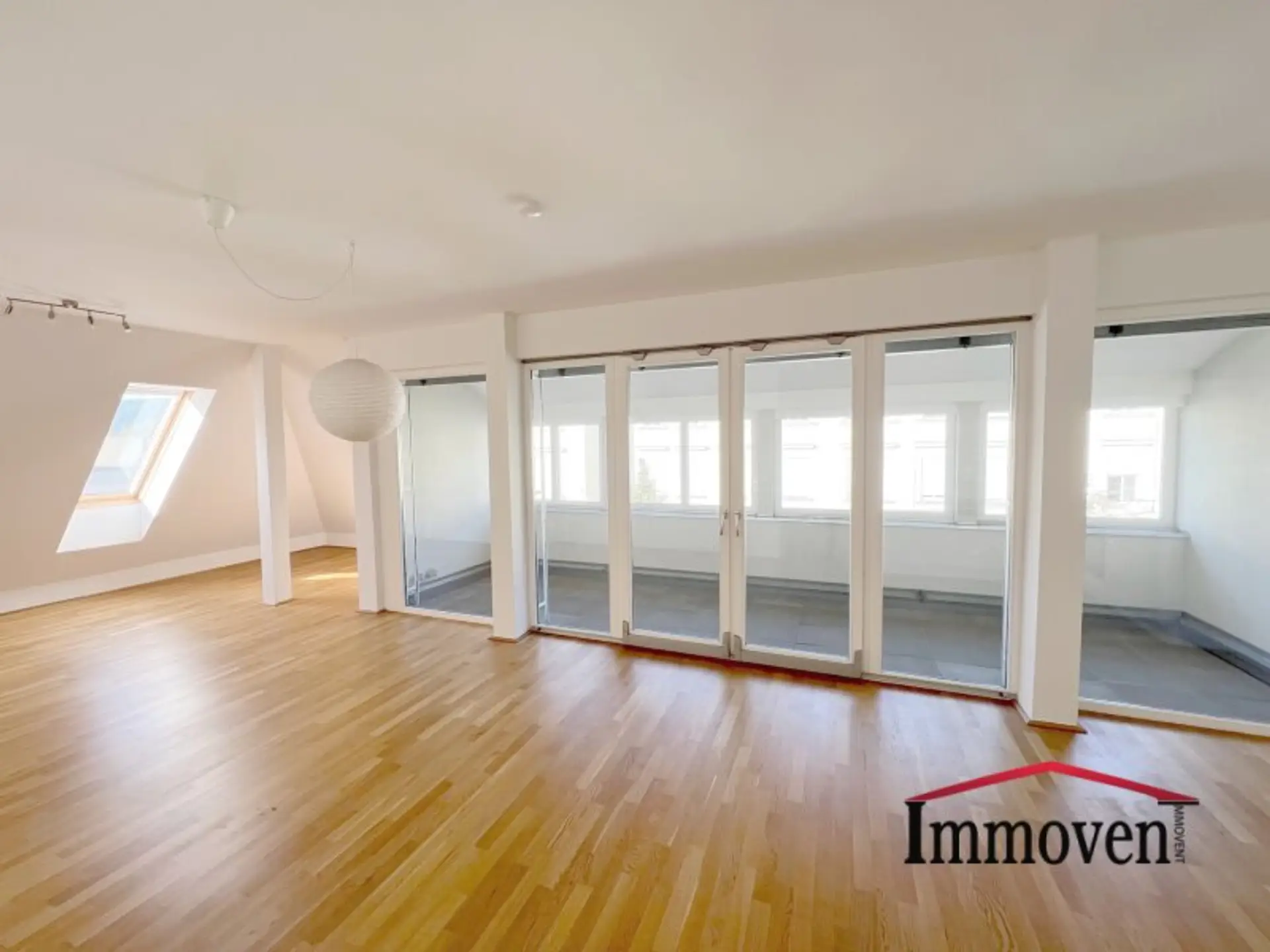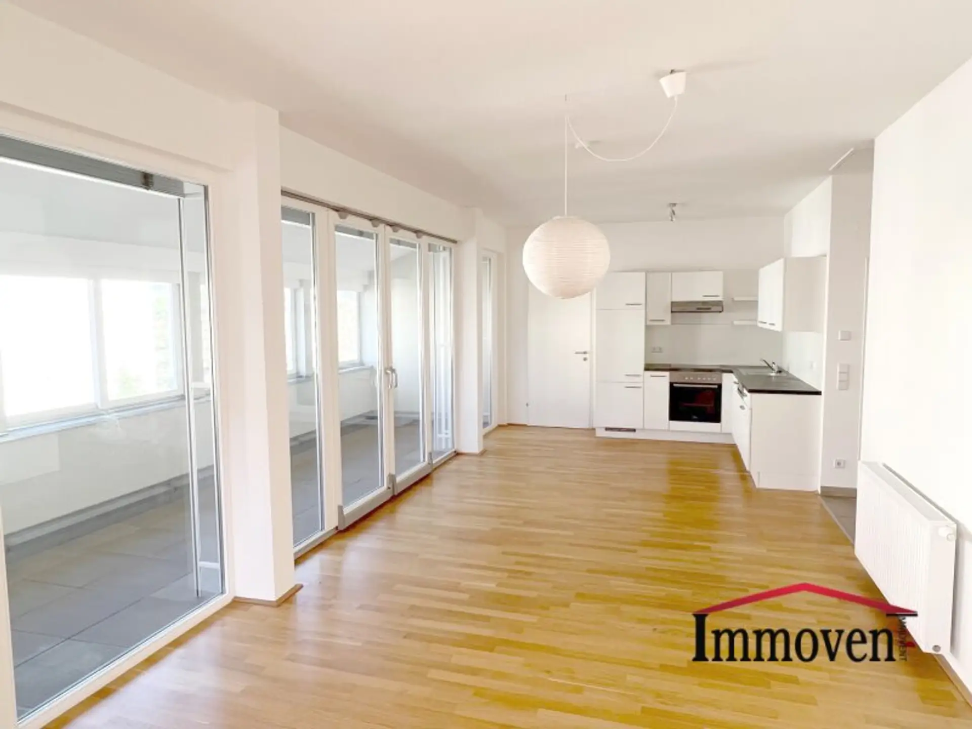 + Großer Wohnraum mit offener Küche und Zugang zur großen verglasten Loggia