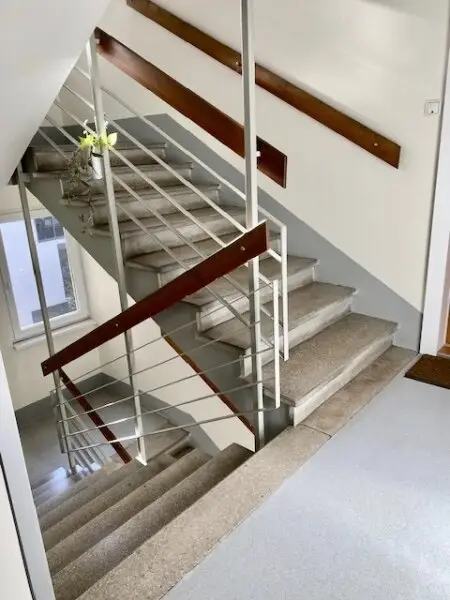 Die Wohnung geht auf eine ruhige Gasse. Sie ist südöstlich ausgerichtet und freundlich.