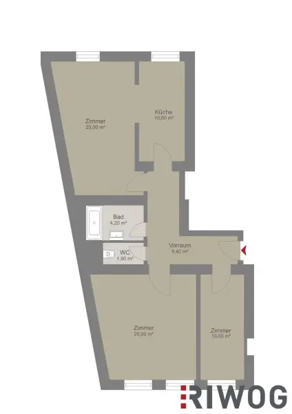 Die Wohnung war ursprünglich als 3-Zimmer-Wohnung ausgeführt. Der bisheriger Bewohner hat eine Wand zwischen den beiden Schlafzimmern entfernt. Diese kann wieder aufgestellt werden, sodass die Wohnung wie ursprünglich über 3 Zimmer verfügt.
