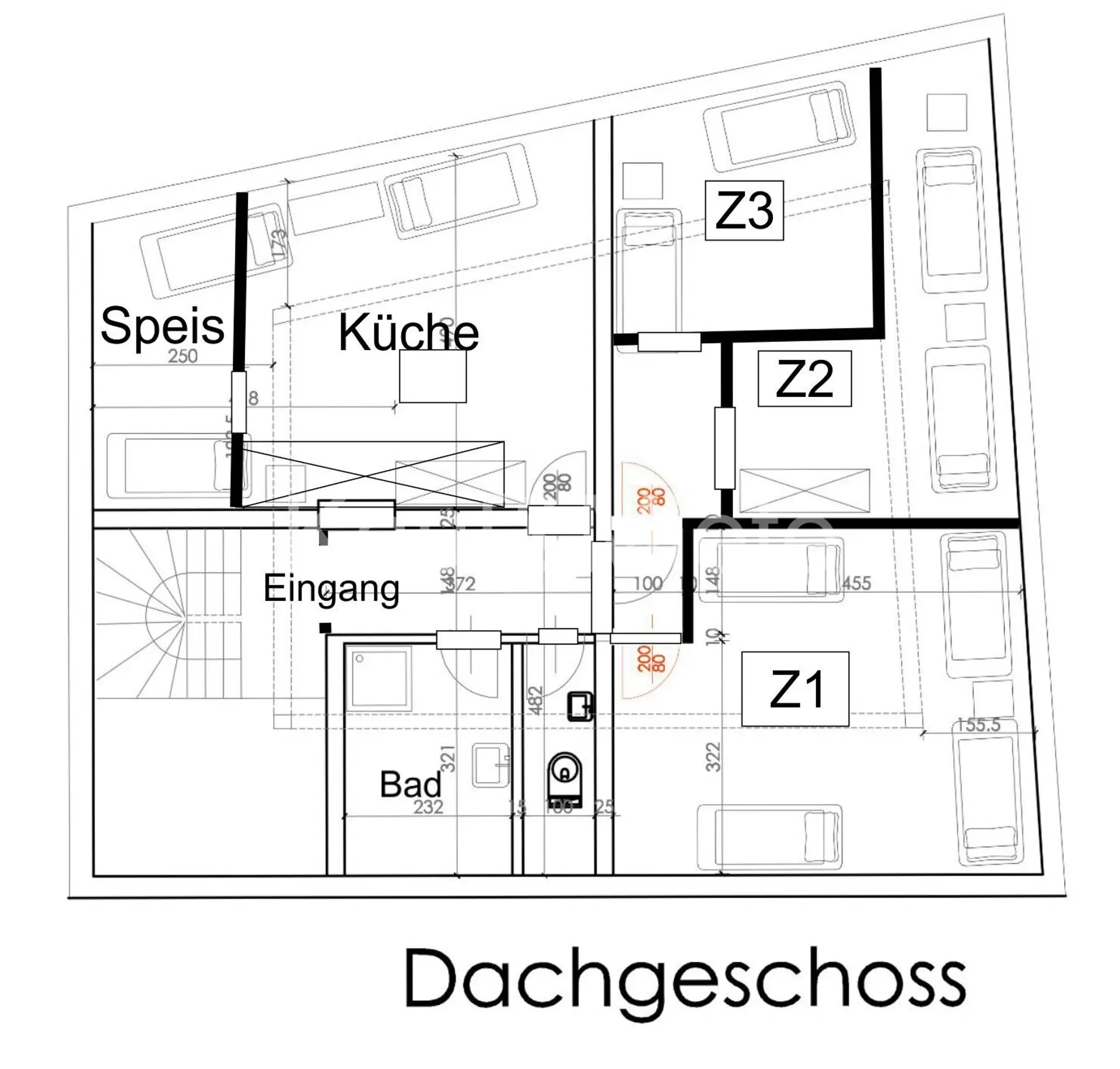 Sehr schöne DG Wohnung mit Wohnküche - gr. Speis und 3 Schlafzimmern - BAdezimmer mit Dusche und Fenster - WC getrennt