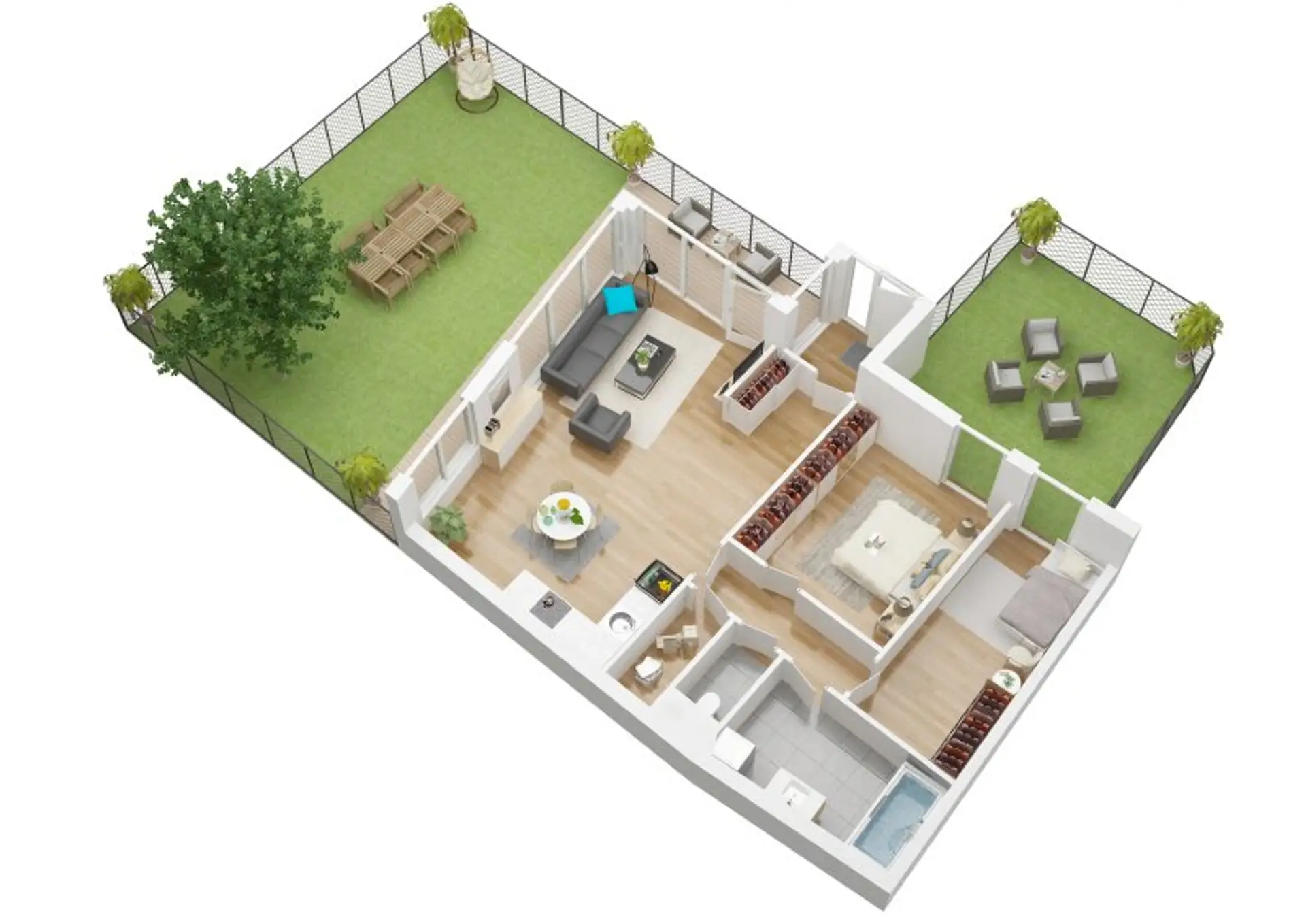 - 2 Schlafzimmer mit Ausgang auf in den Eigengarten