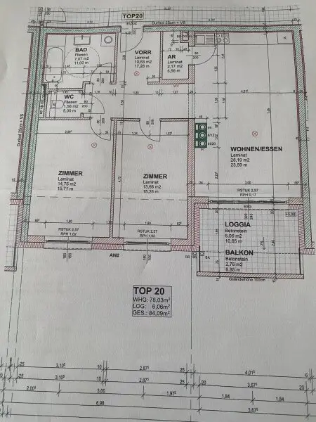 Diese wunderschöne Wohnung hat 78 m2 Wfl. und noch 6 m2 Loggia dazu.