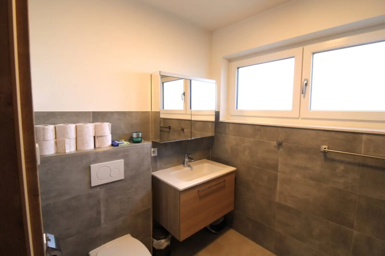 BAD: BADEZIMMER MIT WC UND FENSTER.