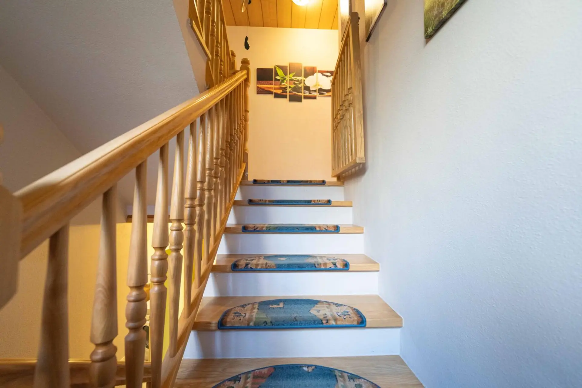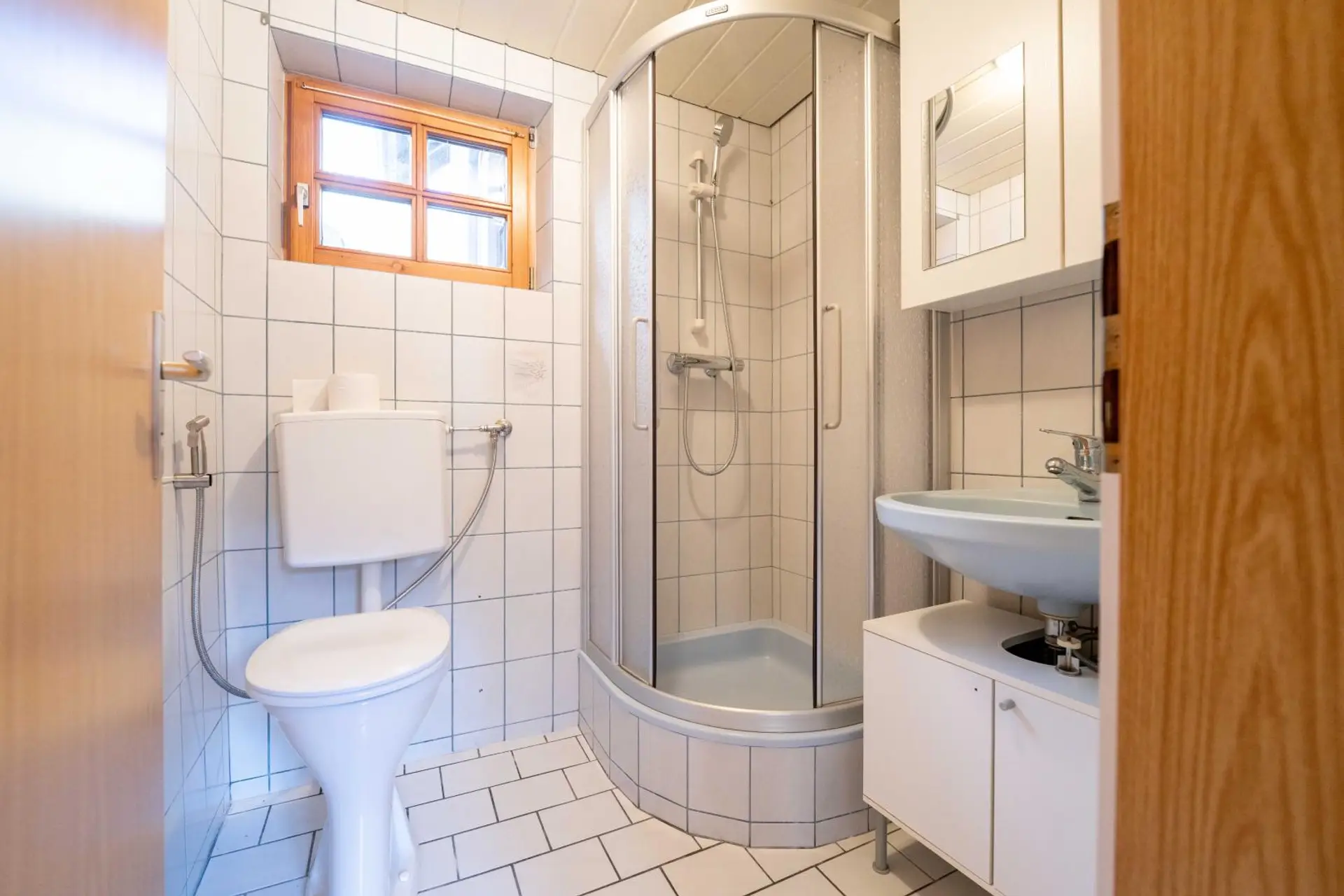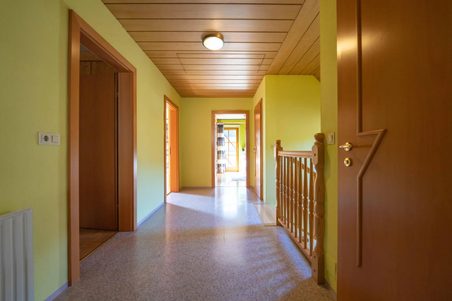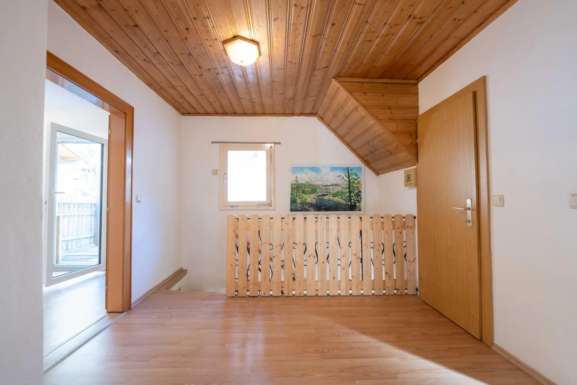 Das Obergeschoss bietet einen Vorraum, drei Zimmer, einen Abstellraum sowie ein separates WC. Ein weiteres Badezimmer ist bereits vorbereitet, jedoch noch nicht ausgebaut und kann nach eigenen Vorstellungen fertiggestellt werden. Von zwei der Zimmer aus gelangt man auf den Balkon, der einen schönen Ausblick bietet und zusätzlichen Platz im Freien für entspannte Stunden schafft.