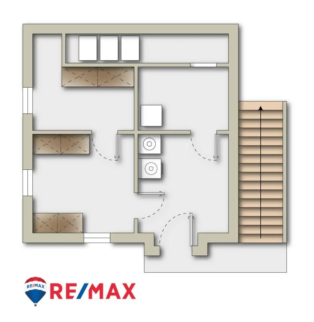 Im Erdgeschoss befinden sich ein Vorraum, eine Küche, ein Wohnbereich, ein Zimmer, ein Badezimmer mit WC sowie ein Abstellraum.