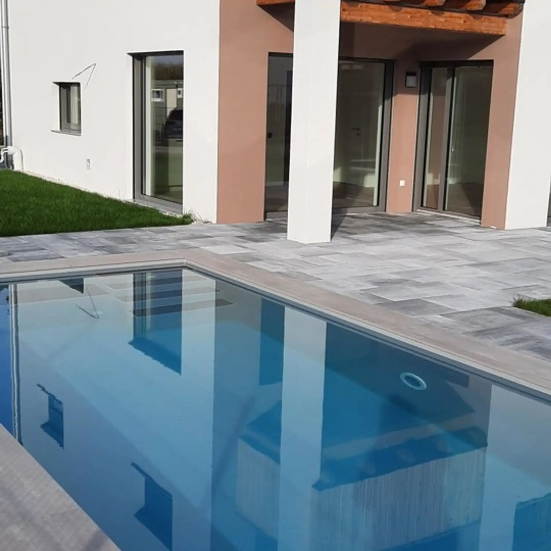 Auf Qualität bei den Materialien und auf eine professionelle Ausführung wurde sehr viel wert gelegt. Bei der Zufahrt, im Carport und bei der Terrasse wurden zeitlos elegante Pflastersteine verwendet. Ein Pool erweitert den Wohlfühlfaktor!