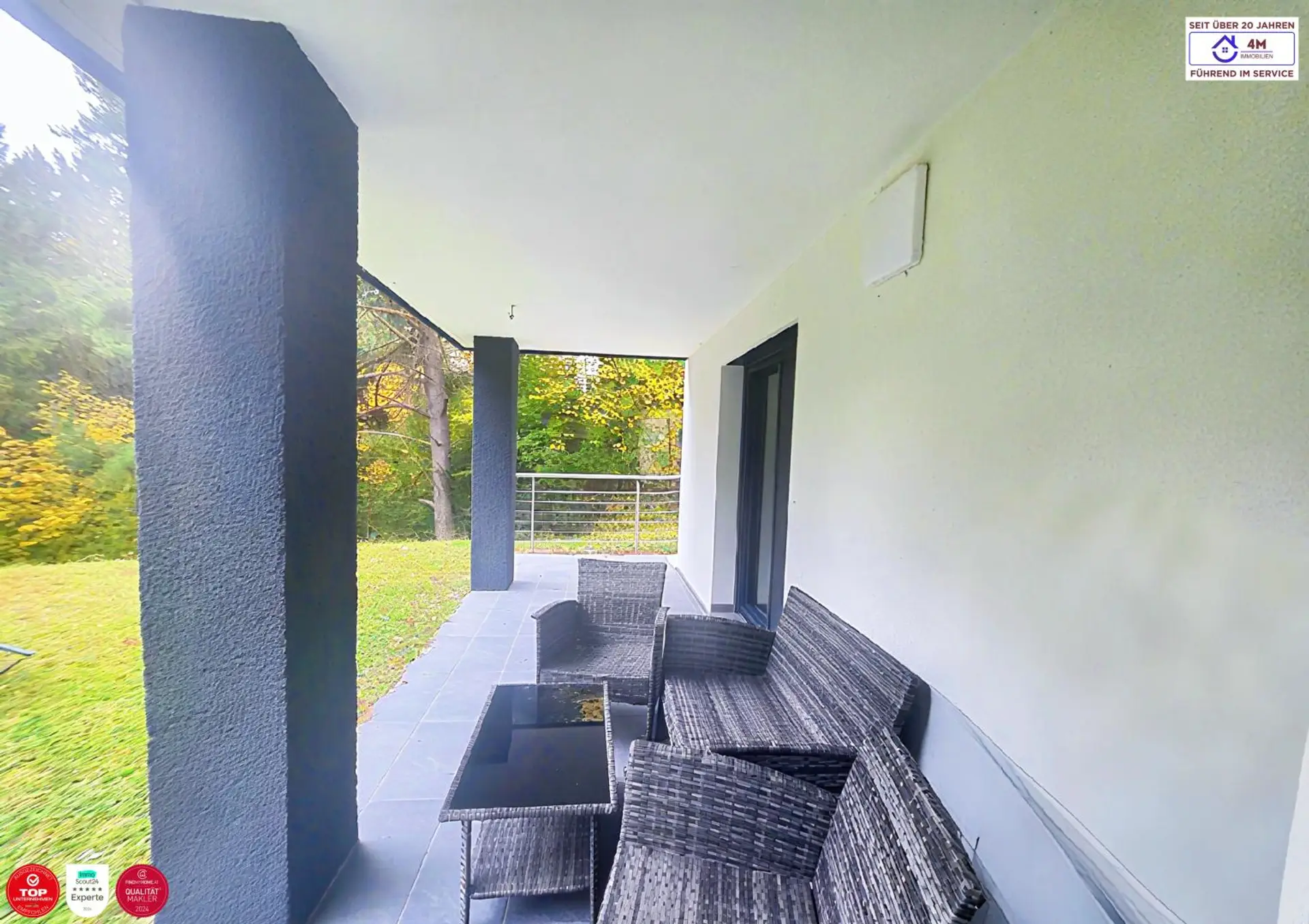 Zum Objekt gehören mehrere Terrassenbereiche (Hauptterrasse ca. 16 m²), Gartenflächen sowie eine Fasssauna in absolut ruhiger Umgebung ohne Durchzugsverkehr.