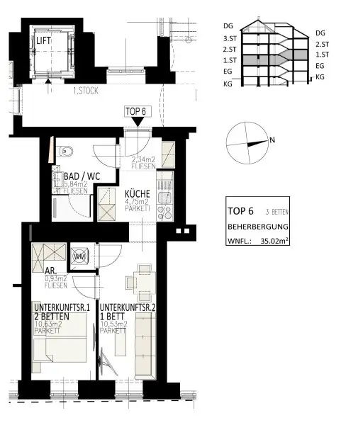 Top 10, 2. OG, 36,12 m², 3 Betten, KP-Netto: € 270.354,-