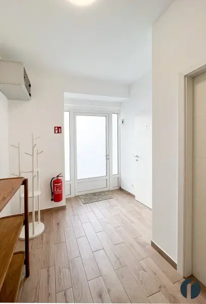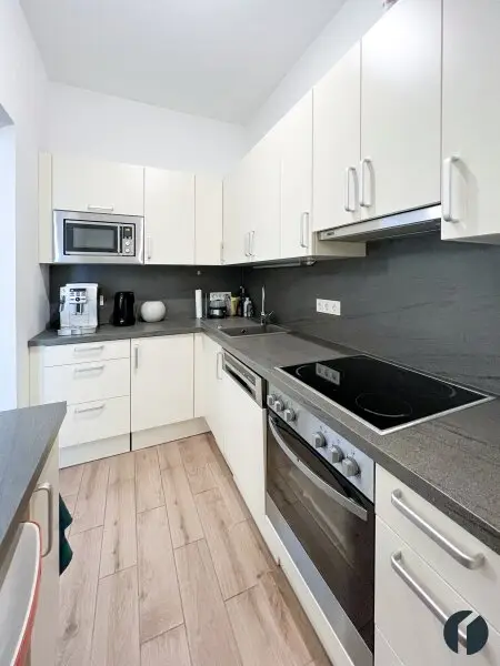 Die Gemeinschaftsräume bieten Ihnen ein Vorzimmer mit Garderobe, eine Küche mit allen Geräten (Herd, Geschirrspüler, Dunstabzug, Kühl- Gefrierkombination, Mikrowelle), ein Bad mit Dusche sowie ein WC mit Handwaschbecken. Auch die vor der Eingangstüre liegende ca. 5 m2 Terrasse kann von allen Mietern genutzt werden.