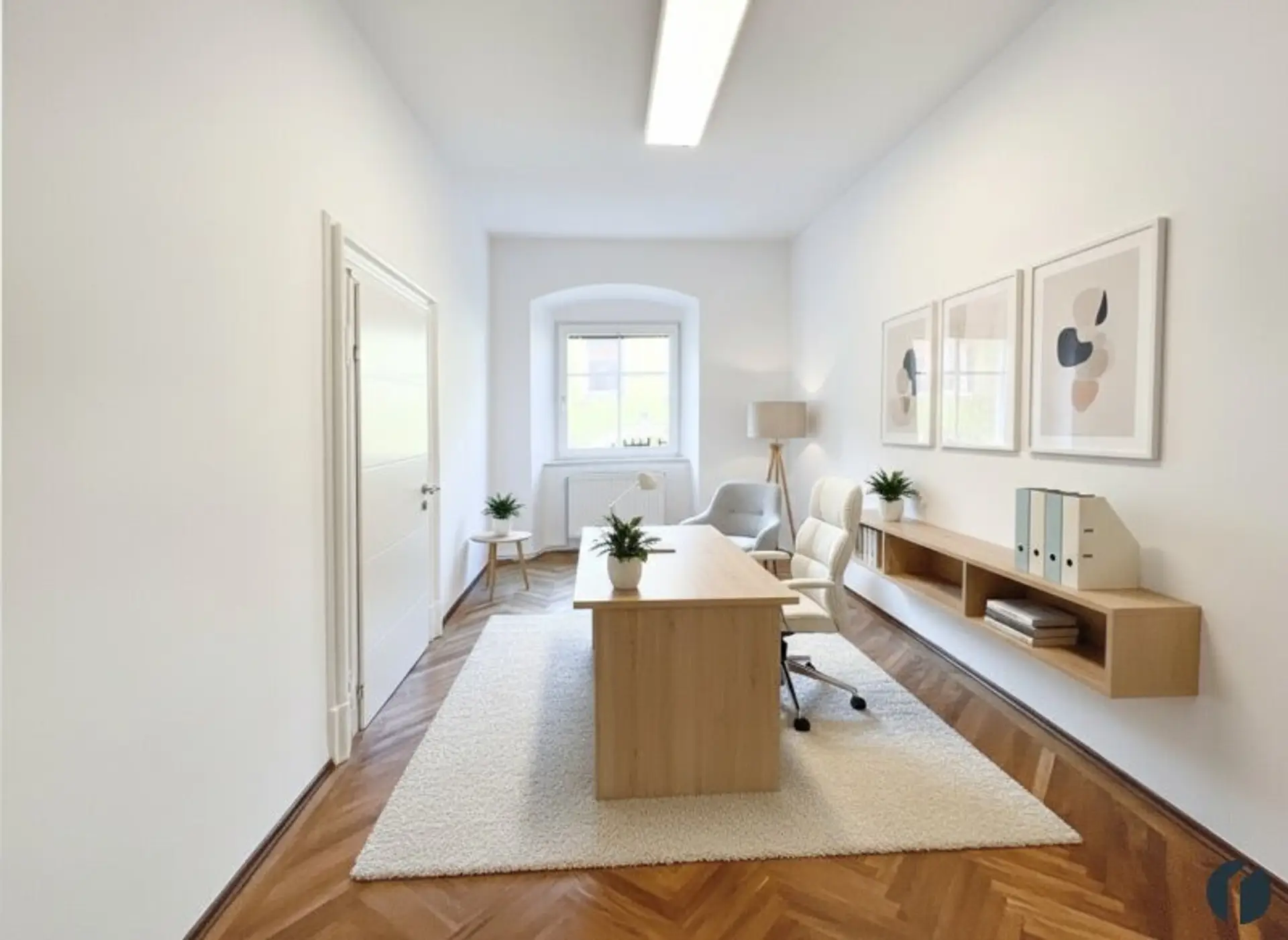 Zur Vermietung gelangt ein eleganter Büroraum im Shared Office im 1. Stock eines Geschäftshauses in der Wiener Straße. Die sehr schön ausgestattete Räumlichkeit im denkmalgeschützten Gebäude bietet modernes Arbeiten im eleganten, historischen Ambiente. Der schöne Fischgrät Parkett und die hohen Räume, Details wie das historische Fenster mit Ornament Rahmen, die restaurierten Türstöcke, all das macht den Charme dieser wunderbaren Räumlichkeit aus. Die Technik, Küche, Bad und WC Anlage sind aber auf dem neuesten Stand, so dass das Arbeiten zum Vergnügen wird.