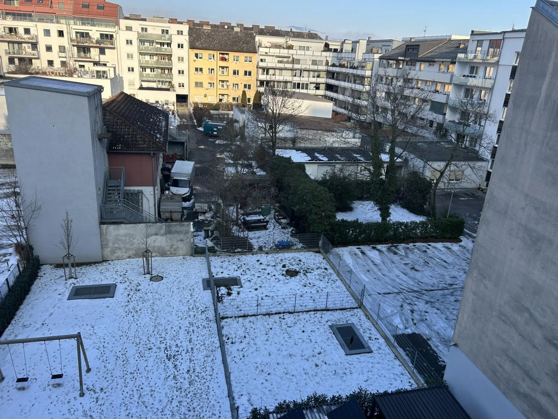Eine noch nie bewohnte Wohnung im 4. Stock für Singel oder Pärchen fast mitten in der Stadt.