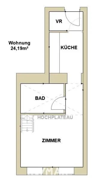 Grundriss nutzt den verfügbaren Raum clever aus: Ein Hochplateau schafft eine zusätzliche Ebene, die den