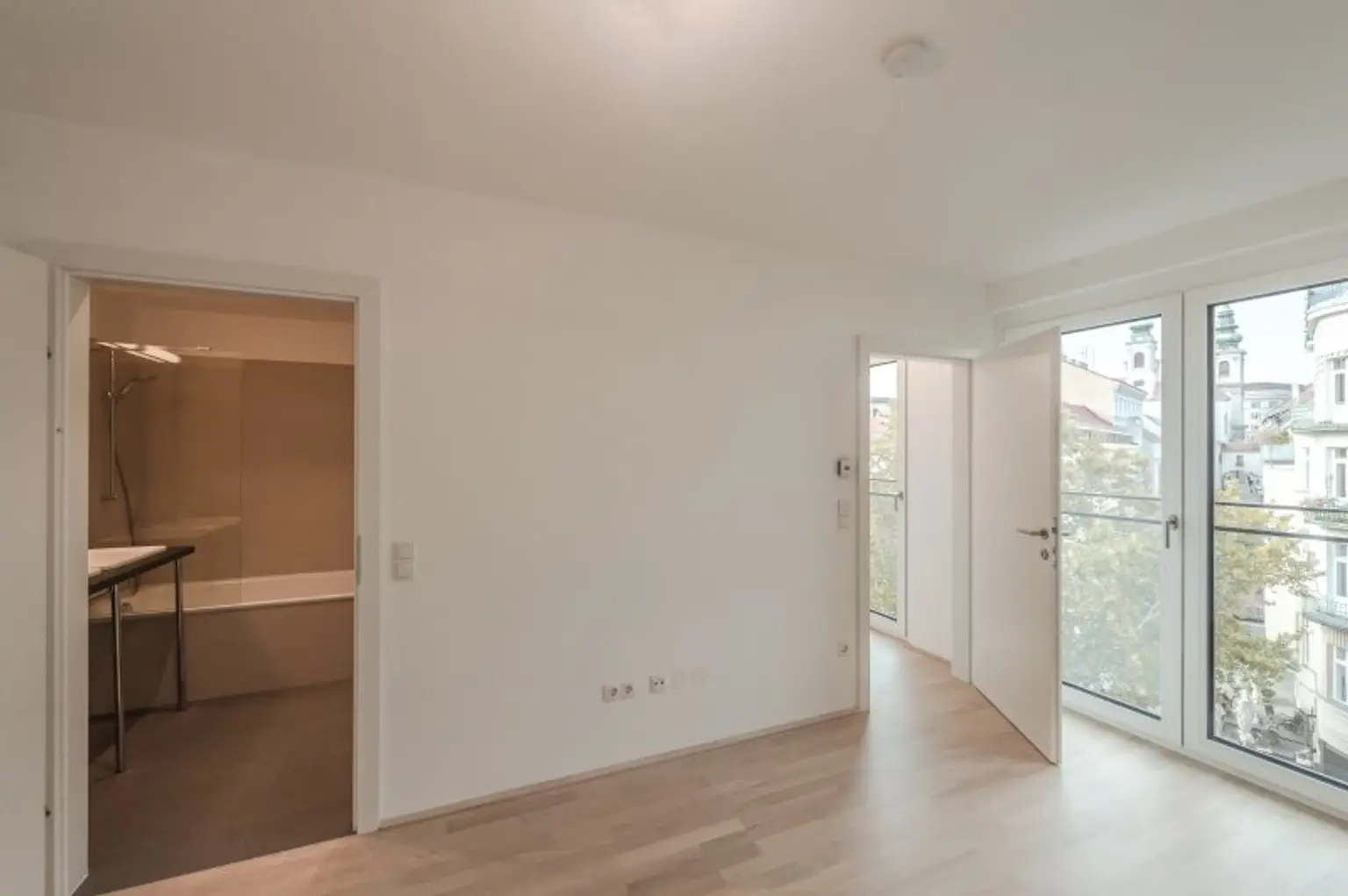 Zur befristeten Vermietung gelangt diese helle, toll aufgeteilte und sehr hochwertig ausgestattete ca. 48 m² große Neubauwohnung im 6. Stock eines im Jahr 2018 fertiggestellten Neubaus in absoluter Bestlage im 06. Wiener Gemeindebezirk, unmittelbar beim Haus des Meeres gelegen.