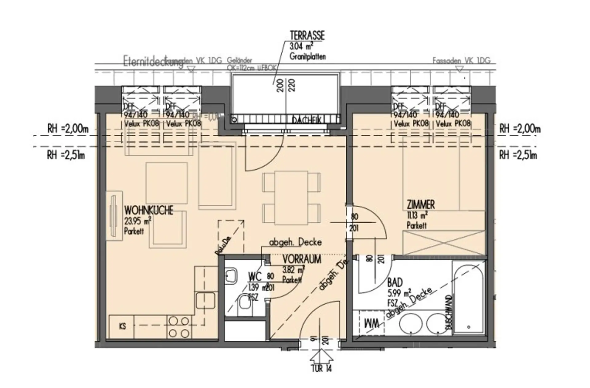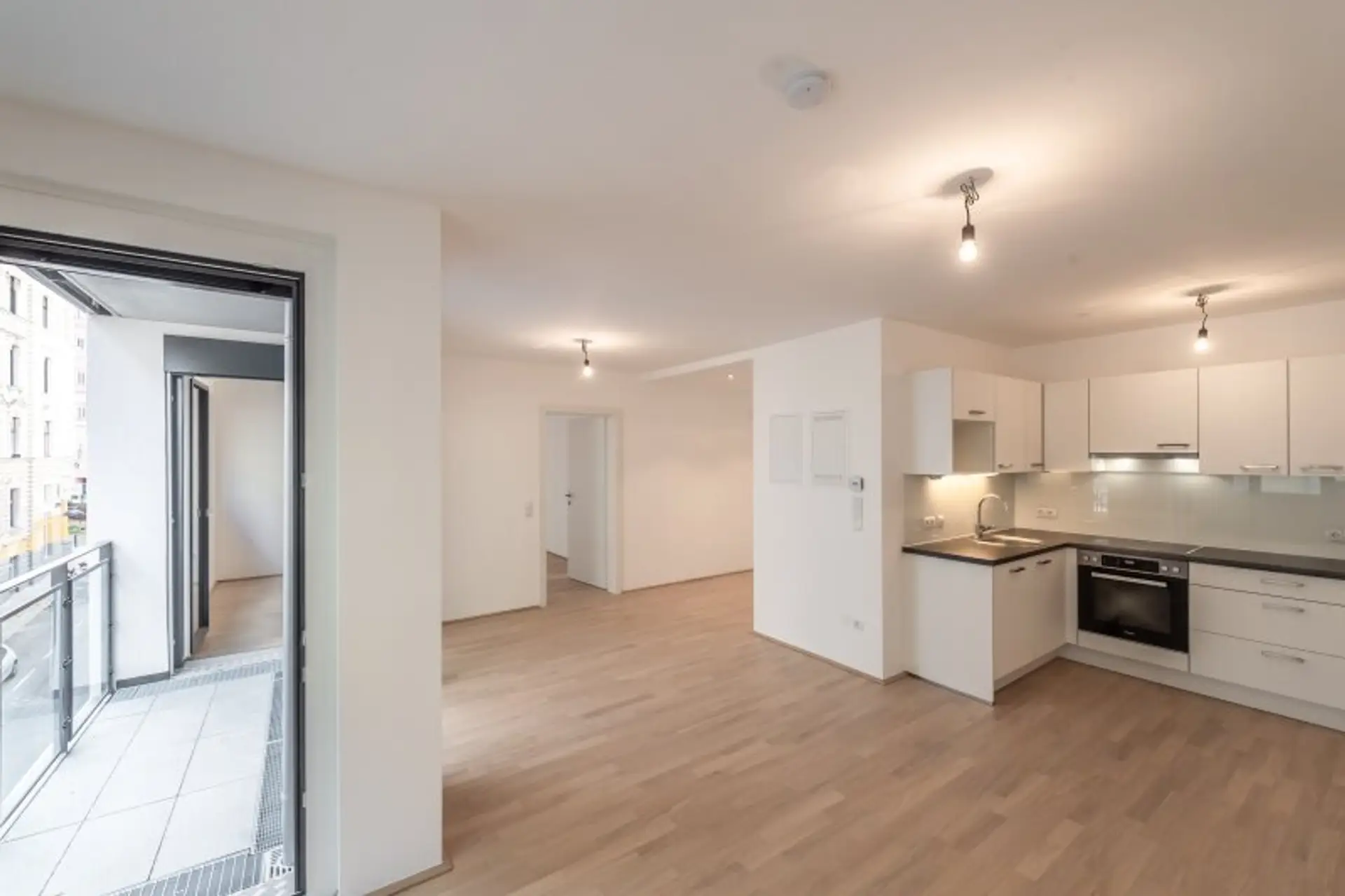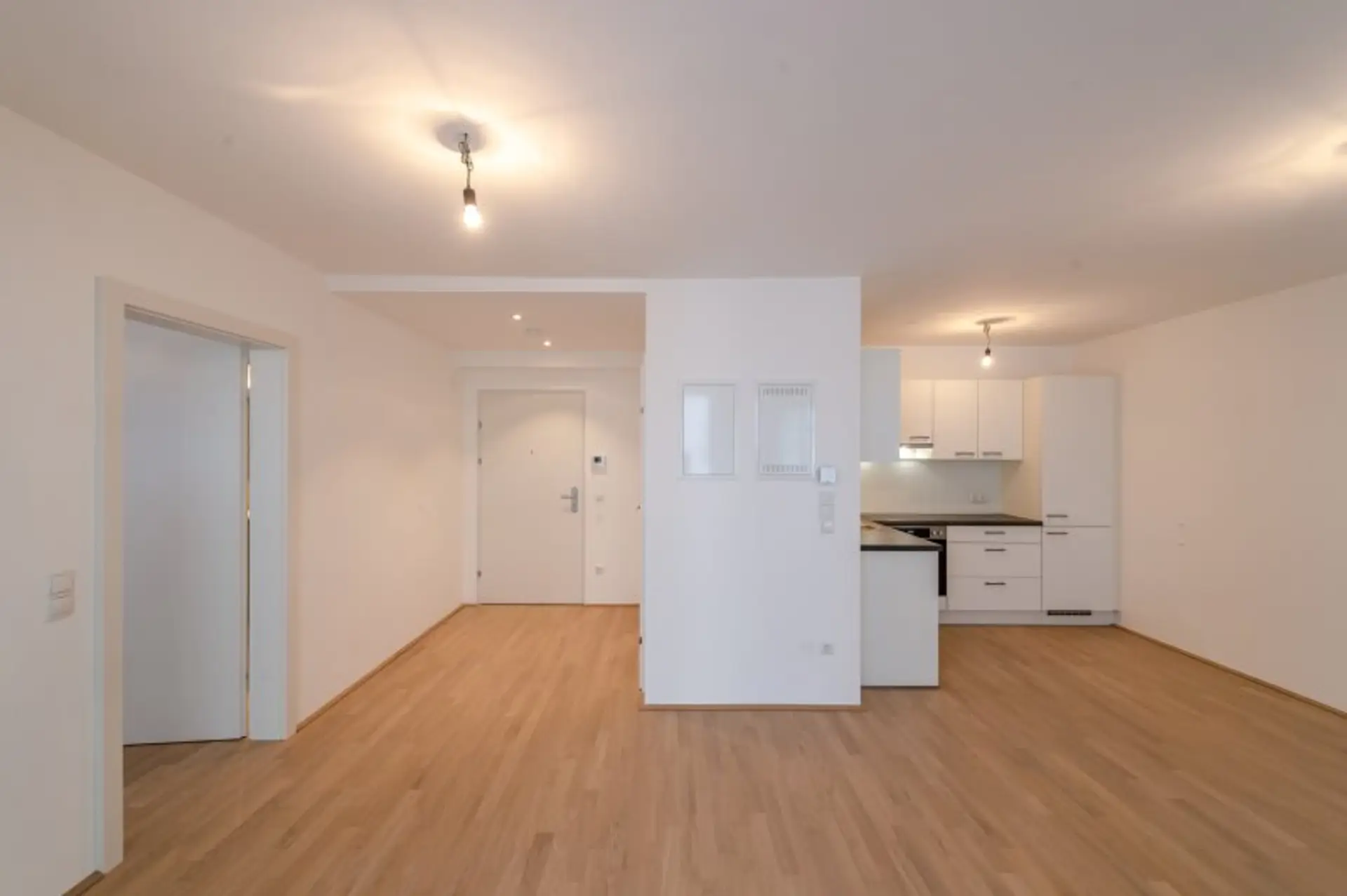 * Wohnzimmer mit Einbauküche (25,70 m²)