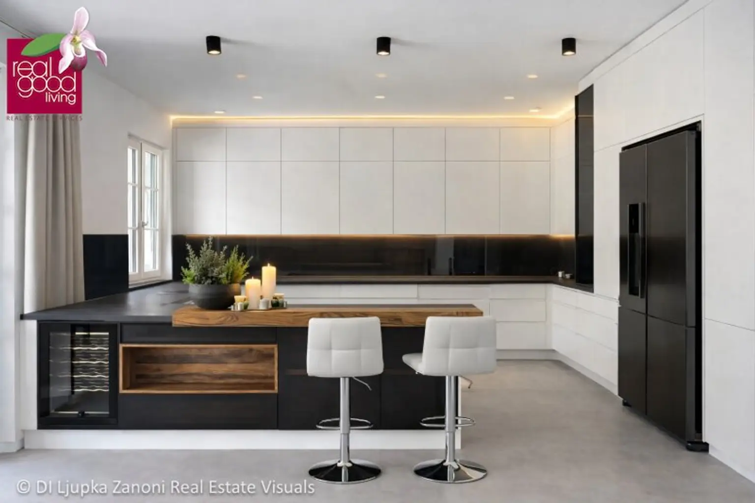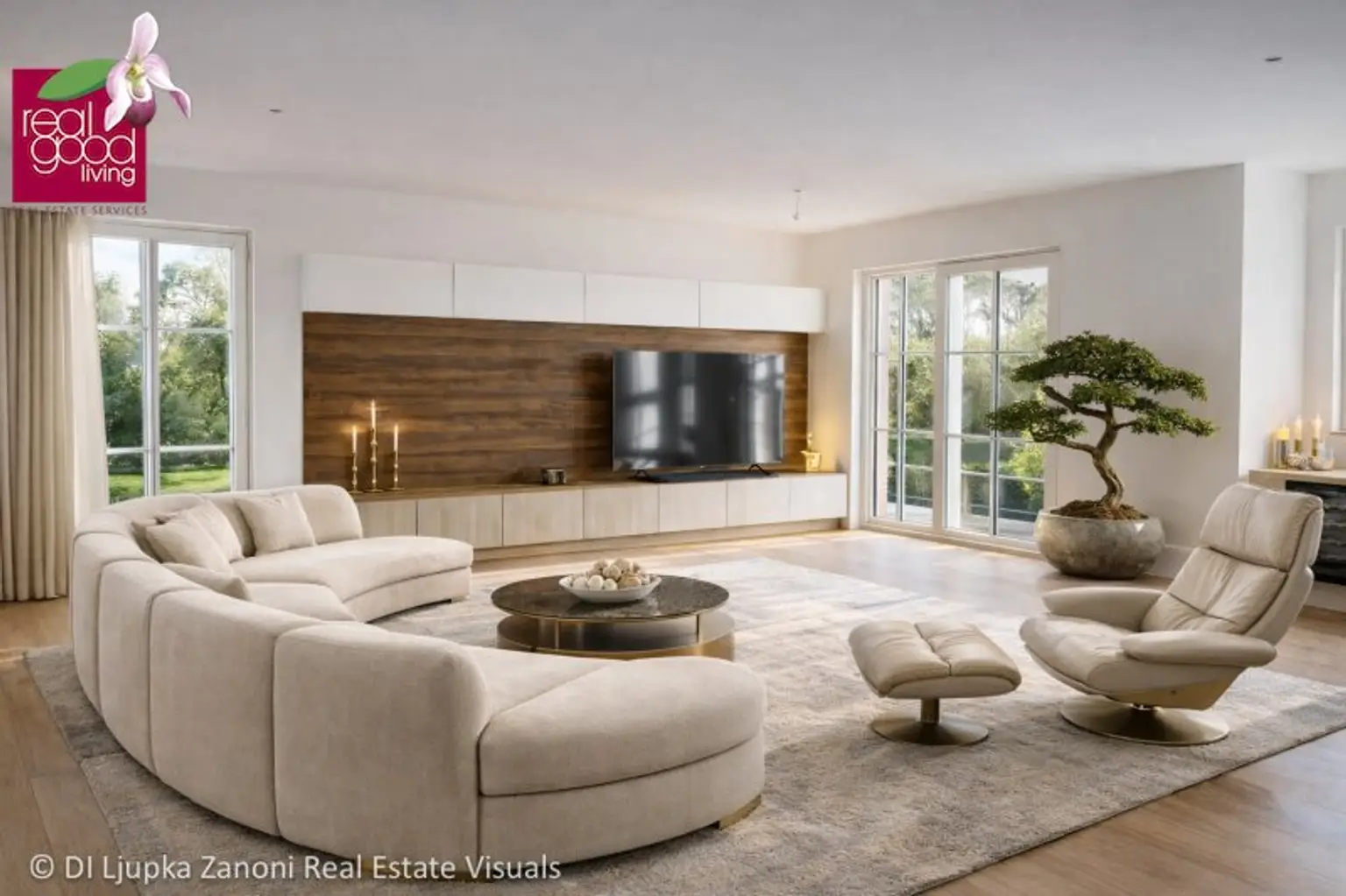 präsentiert DI Ljupka Zanoni für RealGoodLiving eine außergewöhnliche Residenz mit beeindruckender Großzügigkeit und architektonischer Klarheit.