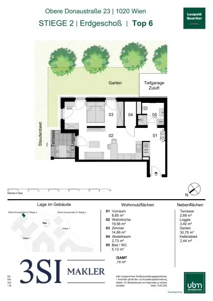 Diese moderne und ungestörte Gartenwohnung mit viel Licht ist etwas besonderes mitten in der Stadt. Die Einheit verfügt über eine Wohnnutzfläche von ca. 51 m² und bietet zusätzlich einen ca. 3 m² Loggia und 30,7 m² Garten ausgerichtet in den Osten.