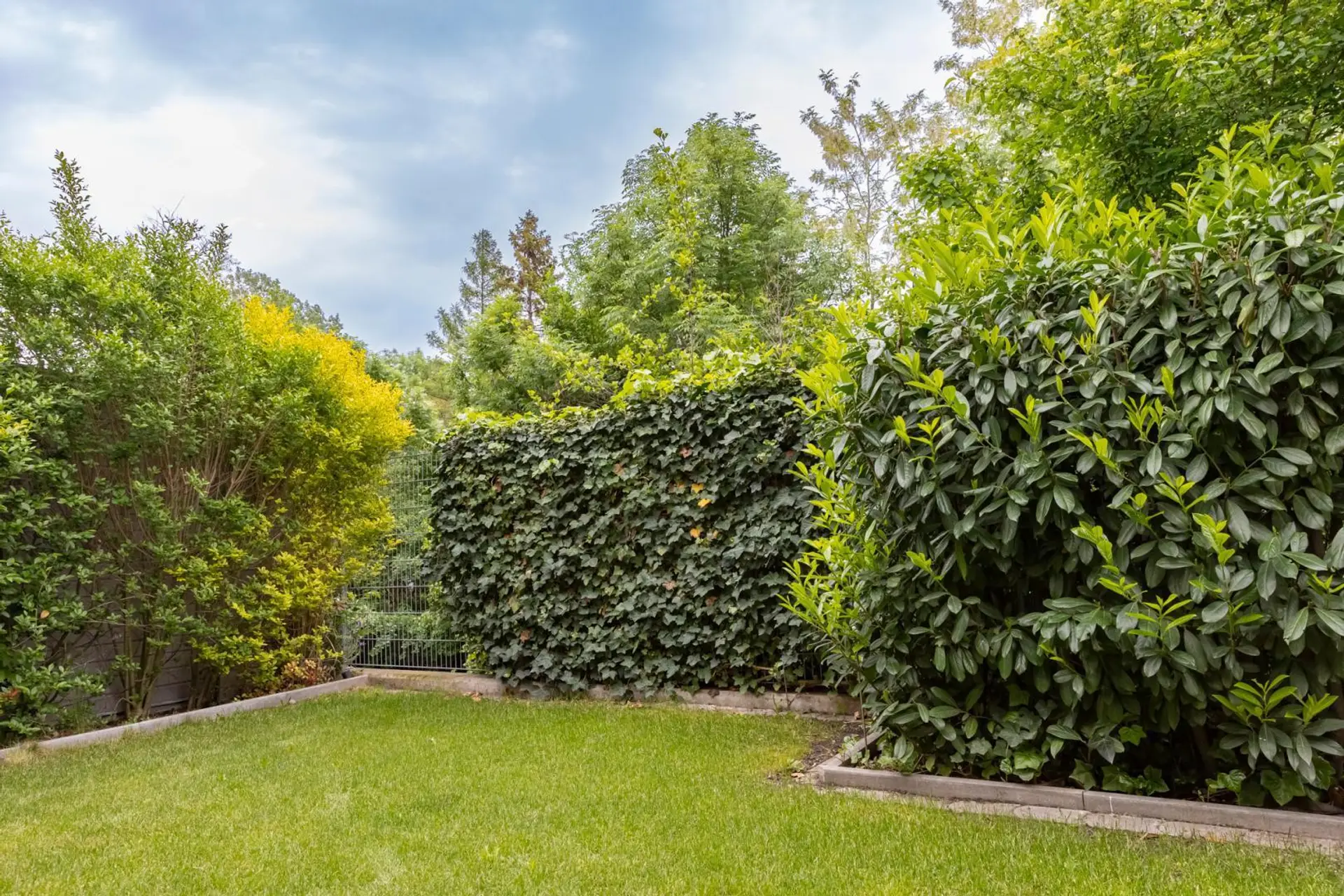Durch einen 6,87m² großen Lagerraum für Gartengeräte kommen Sie von der Garage direkt in den Garten mit Mähroboter und automatischer Bewässerungsanlage.