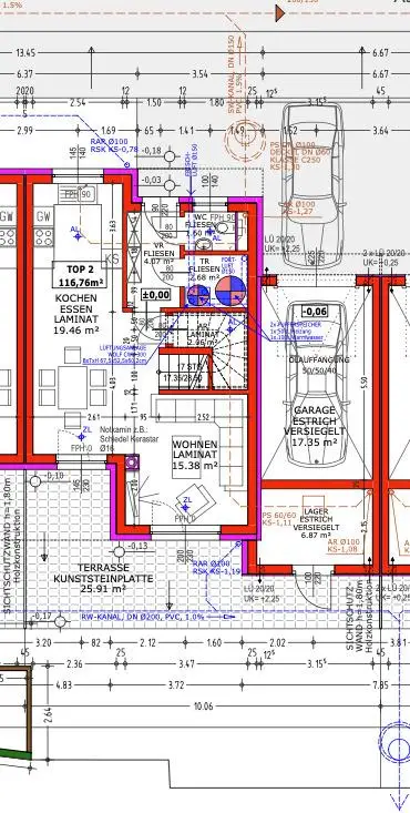 Vor der 17,35m² großen Garage befindet sich noch ein KFZ-Abstellplatz.
