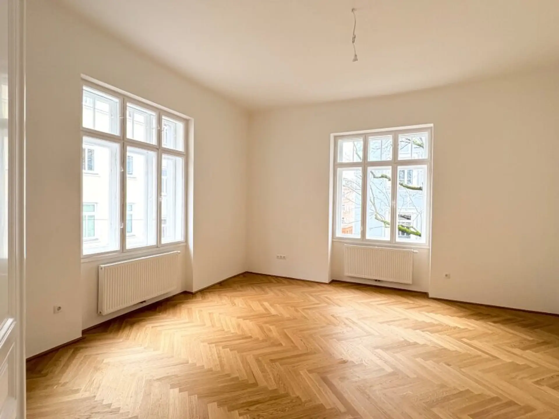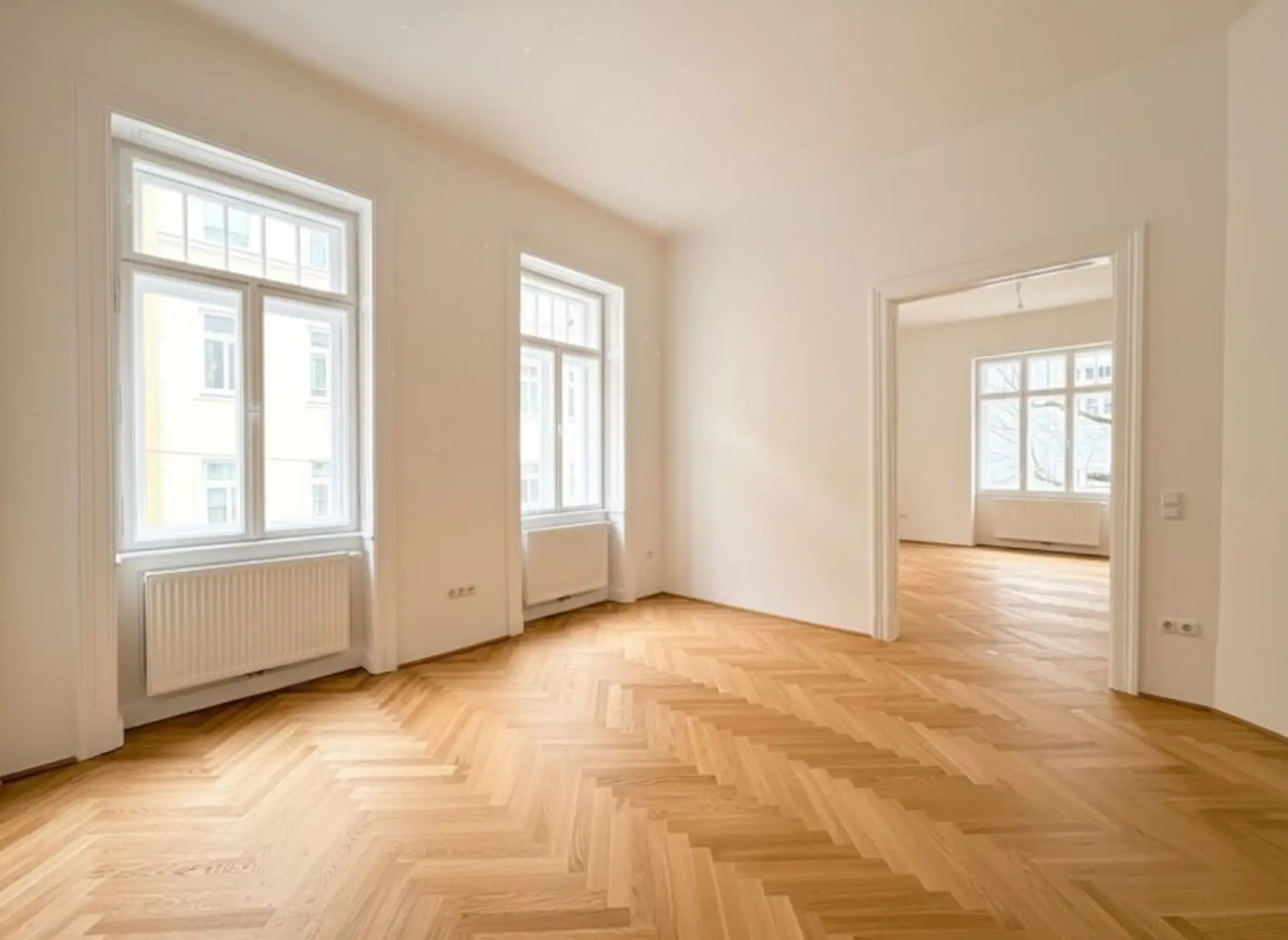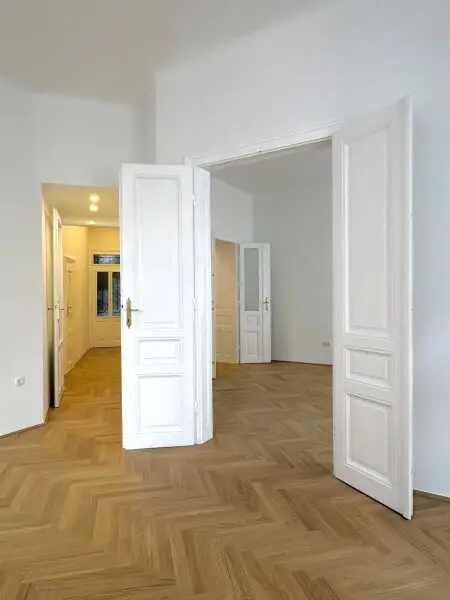Flügeltüren, Fischgrät-Parkett und überdurchschnittlich hohe Räume in ruhiger Lage im gutbürgerlichen 18. Bezirk - hier schlagen die Herzen von AltbauliebhaberInnen in der Sekunde höher! Die soeben frisch sanierte 2-Zimmer-Wohnung in einem klassischen Altbau aus dem Jahre 1904 liegt im 1. Stock mit Hochparterre, ein Lift ist gerade in Planung. Sie ist hell und wurde mit viel Liebe aufwändig und vollständig saniert und bietet modernen Wohnkomfort in altehrwürdigen Mauern. Bei der Sanierung wurde großes Augenmerk darauf gelegt, Altes zu erhalten und mit Neuem so zu ergänzen, dass sich ein harmonisches Ganzes ergibt, was man beim Betreten der Wohnung sofort spürt. Die wunderschönen großen Holzkastenfenster und originalen Flügeltüren wurden alle erhalten und neu in Stand gesetzt, was der Wohnung ein unvergleichlich schönes und großzügiges Atelier-Flair verleiht!