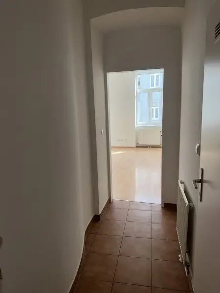 Vom Vorraum aus erreichen Sie das erste Zimmer, von dem aus sowohl die Küche als auch das zweite Zimmer zugänglich sind.