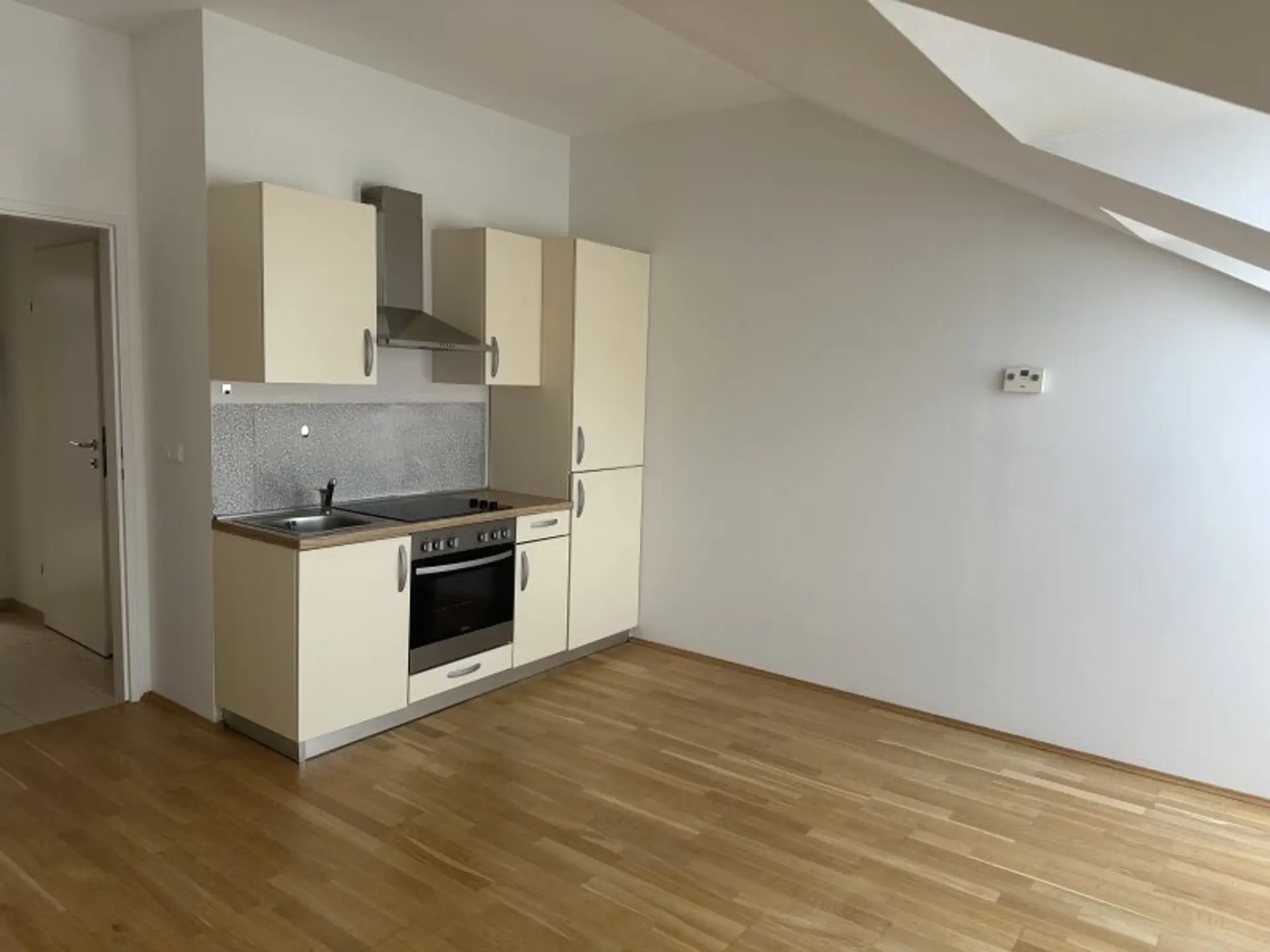 Die Wohnung verfügt über eine Wohnfläche von 30 m². Die Küchenzeile ist in den Wohnraum integriert. Südseitig ausgerichtete Dachflächenfenster sorgen für viel Tageslicht und eine angenehme Wohnatmosphäre.