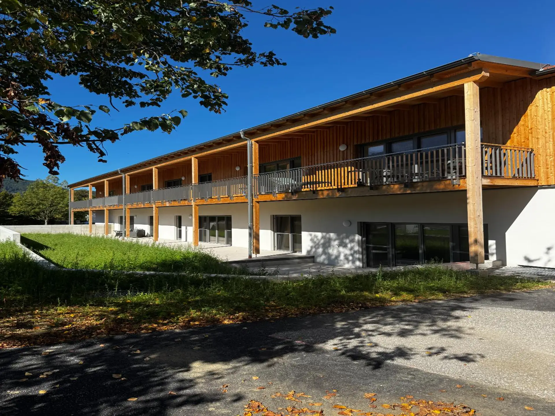 Die klare Architektur der Gebäude und die elegante Holzfassade verleihen dem Wohlfühlprojekt ein zeitlos-modernes Erscheinungsbild.